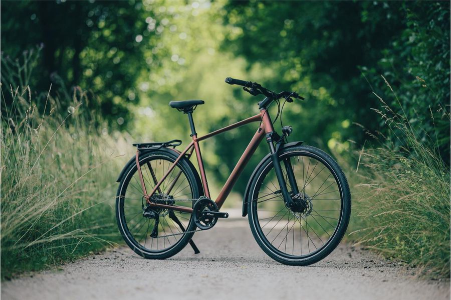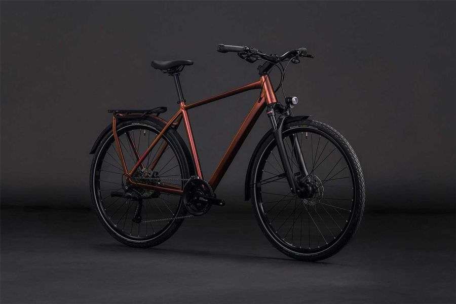 Das CUBE Kathmandu Pro hat alles, was wichtig ist, und kommt ohne unnötigen Schnickschnack aus. Seine schlichte Eleganz und hohen Allround-Qualitäten verdankt das Bike dem integrierten Gepäckträger IC3.0, den Schutzblechen, Vorder- und Rücklichtern und den CUBE FM Seitenständer. Mit seiner robusten Konstruktion liefert dieser Tourer aber auch auf langen Strecken voll ab. Komfortabel dabei: die Suntour Luftfedergabel, die sämtliche Buckel oder Schlaglöcher auf der Strecke glattbügelt, und die Green Marathon Reifen von Schwalbe, deren Gummimischung zu einem großen Teil aus recyceltem Kautschuk besteht – ein Plus für die Umwelt. Shimano steuert seine breit gefächerte Cues 2x10-Gang Schaltung bei – so wird jede Route zum Spaziergang. Dazu passende hydraulische Shimano Scheibenbremsen ermöglichen sichere Bremsmanöver, selbst bei Nässe und voller Beladung. Ob Großstadtdschungel oder Outback: Das Kathmandu Pro ist live dabei!