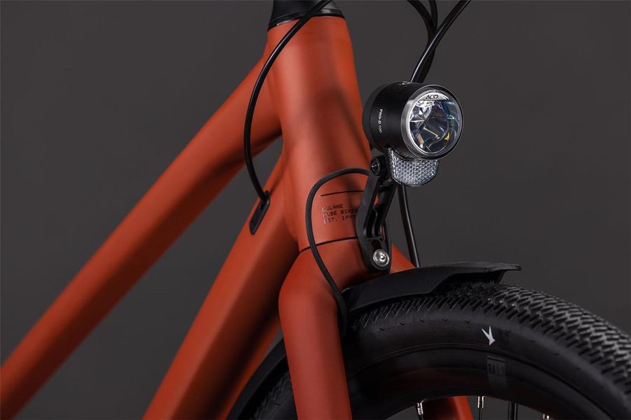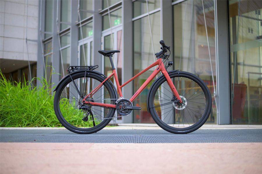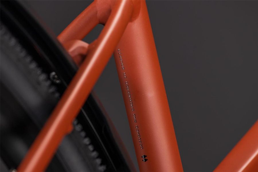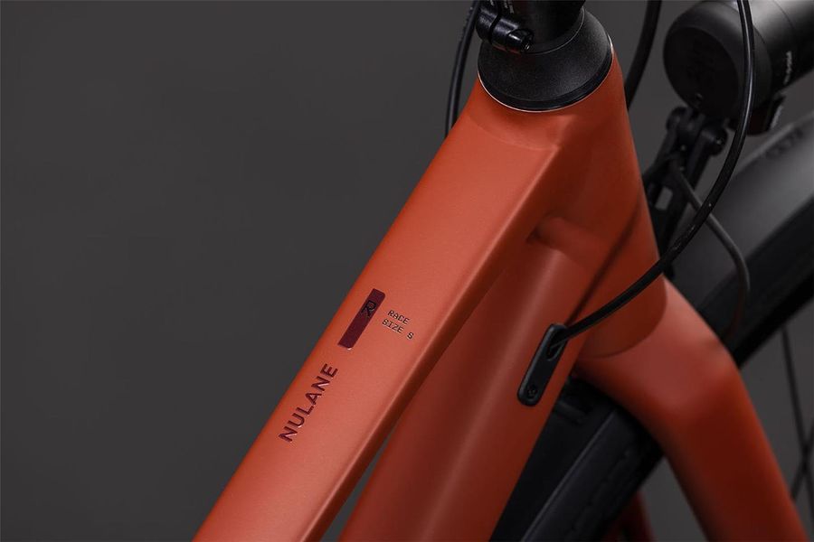 Der Trapezrahmen unseres vielseitigen Nulane wirkt auf den ersten Blick vielleicht unspektakulär, doch sein Komfort und Handling sind kaum zu übertreffen. Das Auf- und Absteigen gelingt spielend leicht, was den Alltag spürbar erleichtert. Die Kombination aus superleichten, doppelt konifizierten Aluminiumrohren und einer Vollcarbongabel hält das Gewicht niedrig und die Fahrdynamik hoch. Integrierte Schutzbleche, Gepäckträger, Beleuchtung und ein Seitenständer runden das Setup ab – perfekt für den täglichen Weg ins Büro oder entspannte Wochenendtouren. Ein echtes Highlight sind die Steckachsen vorne und hinten, die für stabile Kontrolle sorgen, egal ob mit oder ohne Gepäck unterwegs.