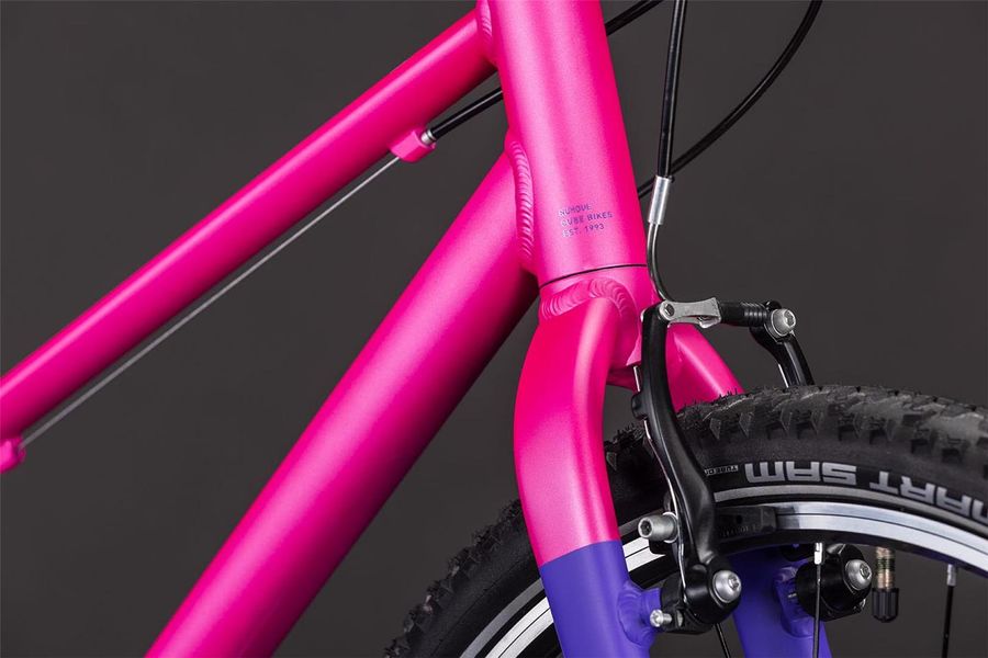 Bei der Entwicklung des Numove 240 haben wir besonders viel Wert auf wenig Gewicht gelegt. Warum? Weil sich ein leichtes Bike einfacher fährt und den Kids so viel mehr Spaß macht! Sein schlanker Aluminiumrahmen samt passender Gabel ist eins der Highlights, dazu haben wir ein leichtes Thun Tretlager (made in Germany) und griffige, schnell rollende Schwalbe Smart Sam Reifen montiert. Die kräftig zupackenden V-Brakes sind leicht zu bedienen, weil die Hebel speziell auf Kinderhände abgestimmt sind, und auch der Lenker und die Griffe sind schmaler. Clever: Dank dem leichten, komplett verstellbaren CUBE Vorbau lassen sich Höhe und Abstand des Lenkers individuell anpassen, so kann das Bike ein Stück weit mit den Kids und ihrem zunehmenden Fahrkönnen mitwachsen. Abgerundet wird das Ganze durch die breit gefächerte 8-Gang Schaltung – damit wird jede Familienradtour zum Spaziergang.