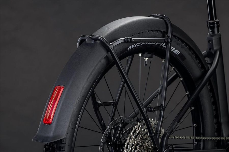 Was beim Reaction Hybrid FE direkt ins Auge sticht, ist sein ästhetisch ansprechendes, praktisches Zubehör, bestehend aus Schutzblechen, Lichtern, Gepäckträger und Seitenständer. Doch das ist noch lang nicht alles. Der Tiefeinsteiger-Rahmen macht seinem Namen alle Ehre, denn damit sind einfaches Auf- und Absteigen garantiert. Sein 800 Wh starker PowerTube Akku von Bosch fügt sich gemeinsam mit dem Bosch CX Motor sicher, sauber und formschön ins Design ein. Zudem ist das Chassis PowerMore-ready, das heißt, es können bei Bedarf weitere 250 Wh mitfahren. Auch die integrierte Sattelklemmung und die nach innen verlegten Züge spielen der cleanen Linienführung in die Karten – und die Kettenführung hält alles top organisiert am Platz. Last, but not least haben wir dank unserem Size Split System für alle die richtige Passform im Angebot. Fazit: Alles da, was wichtig ist – für maximalen Fahrspaß!