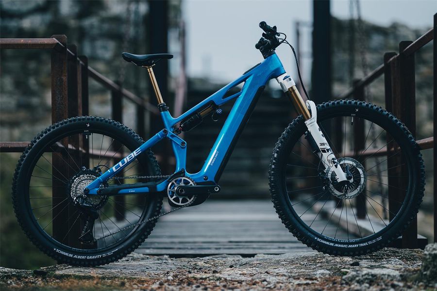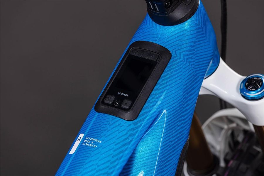 Der Rahmen des Stereo Hybrid ONE77 HPC ist wahrlich eine Klasse für sich, denn hier treffen 170 mm Federweg an der Front und am Heck auf ein Mullet-Set-up mit einem 29 Zoll Vorderrad und 27.5 Zoll Hinterrad. Damit werden Big-Mountain-Trail-Träume wahr! Wie immer bei CUBE maximal detailverliebt konstruiert auch der Rest: Integrated Cable Routing sorgt für einen supercleanen Look. Dazu kommt ein Steuersatz zur Winkelverstellung, mit dem sich das Handling an individuelle Vorlieben und Anforderungen anpassen lässt. Außerdem haben wir den 800 Wh starken PowerTube Akku gleich über dem Bosch CX Motor sauber und formschön ins Carbon-Unterrohr integriert. Für einfachere Ersatzteilverfügbarkeit gibt's ein UDH am Aluminium-Hinterbau – und weil wir auch eine Direct Mount Kettenführung verbaut haben, geht's mit diesem Fully selbst bei schwierigen Bedingungen weiter, weiter und immer weiter.