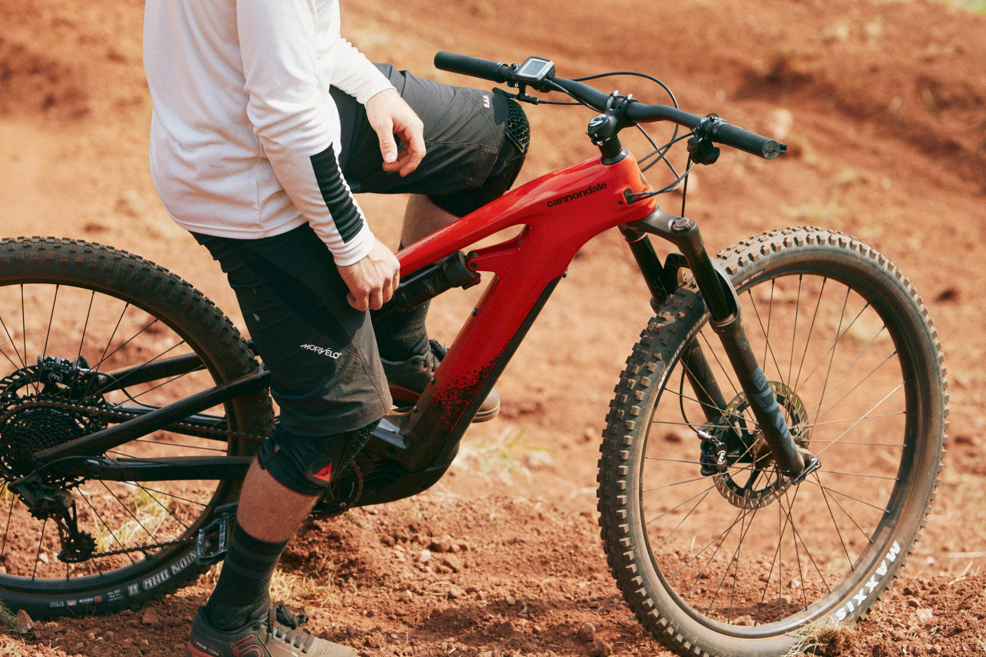 Das Moterra spielt sowohl optisch als auch technisch in der Top-Klasse. Wichtig ist der BallisTec Carbon Rahmen, der das E-Fully leichter und steifer macht. Seine Geometrie überzeugt unter anderem mit den besonders kurzen Kettenstreben, die das E-Bike trotz langem Radstand und 29-Zoll-Laufrädern extrem wendig machen. Verantwortlich dafür ist das Cannondale Asymmetric Integration System, kurz „Ai“. Der Hinterbau ist um sechs Millimeter zur Antriebsseite hin breiter. Dadurch kann das Hinterrad etwas nach vorne rücken. Der tiefe Schwerpunkt des Mittelmotors sorgt für ein Maximum an Traktion und Fahrstabilität. Cannondale hat den Akku geschickt in das Unterrohr integriert, um das Design so clean wie möglich zu gestalten.
