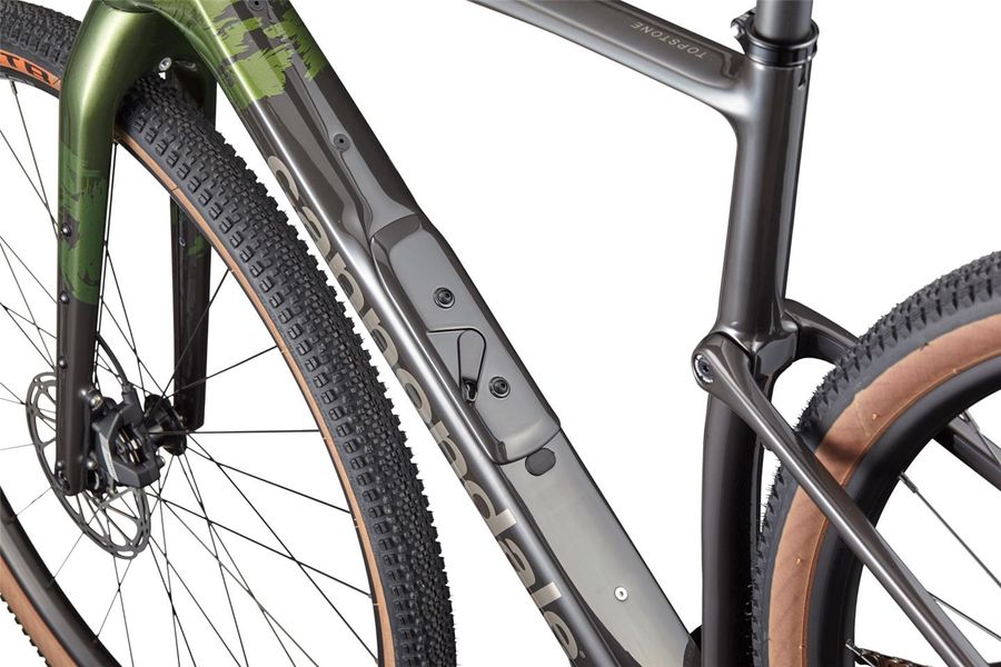 Der Hinterbau ist mit Hilfe einer Steckachse am Sitzrohr beweglich gelagert. Außerdem besitzt der Hauptrahmen flexible Zonen an Oberrohr und Sitzrohr. Dadurch kann der Hinterbau vertikal bis zu 30 Millimeter nachgeben, um Erschütterungen und Vibrationen zu absorbieren. Das bedeutet: Mehr Kontrolle, mehr Komfort, mehr Traktion. Carbon-Layup und Rohrdurchmesser werden für jede Rahmengröße angepasst, um für jeden Fahrertyp das perfekte Maß an Steifigkeit und Flex zu erzielen. Interne Zugführungen schützen vor Verschmutzung und unterstreichen das aufgeräumte Rahmendesign. Zahlreiche Montagepunkte für Zubehör machen das Topstone zu einer optimalen Basis für Bikepacking Abenteuer: Rahmen und Gabel bieten Platz für zwei Trinkflaschen und zwei Lowrider Fronttaschen. Neu dazu gekommen ist ein Staufach im Unterrohr.