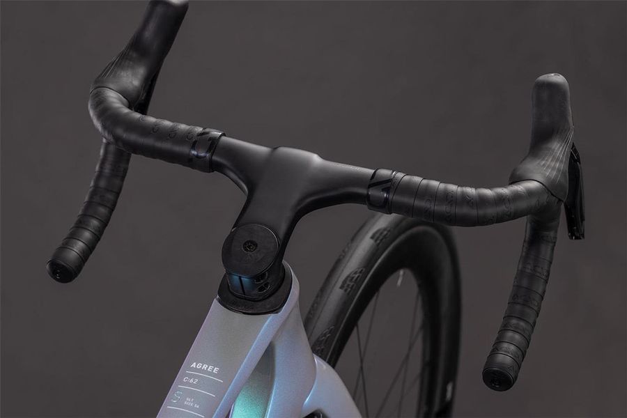 Beim Agree C:62 SLT trifft eine ausgeklügelte Rahmenkonstruktion auf hochwertigste Komponenten: 1a-Voraussetzungen für unschlagbare Performance. Sein voll integriertes Carbon-Cockpit und die C:62® Carbongabel deuten auf jede Menge Hightech und Racing-DNA hin – und auf geringes Gewicht, hohen Fahrkomfort und maximale Aerodynamik. Die Dura-Ace Di2 2x12-Gang Schaltung von Shimano bringt die Kraft aus den Waden über den Dura-Ace Kurbelsatz mit Powermeter top übersetzt auf den Asphalt – und treibt so die Newmen Streem Allround 49/54 Laufräder mit Continental Grand Prix 5000 Pneus effizient vorwärts. Auf steilen Abfahrten beweisen die hydraulischen Shimano Dura-Ace Scheibenbremsen ihre Qualität, indem sie das Bike zuverlässig und sicher verzögern. Genial, vor allem für lange Ausfahrten: die integrierte Rahmenbox, in der alles Platz findet, was im Radtrikot stört. Kette rechts, Wind im Gesicht und der Asphalt gehört dir.