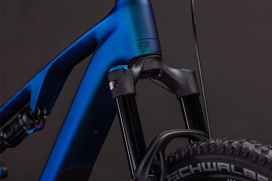Mit bis zu 60 Nm Drehmoment versorgt der leichte Bosch SX Motor samt 400 Wh Akku das AMS Hybrid ONE44 C:68X SLX auf allen Trails mit extra viel Schub nach vorne. Verpackt ist das Ganze in einem superhochwertigen – und superleichten – C:68X Carbonrahmen, der dank PowerMore-ready-Technologie bei Bedarf mit weiteren 250 Wh ausgerüstet werden kann. Ein ins Oberrohr integrierter Controller und eine Mini Remote am Lenker sind auch mit dabei. Dazu überträgt die leistungsstarke elektronische Shimano XT Di2 12-fach Schaltung die Power über eine Carbonkurbel top organisiert auf die Newmen Beskar 30 Laufräder mit 2.4 Zoll Nobby Nic und Wicked Will Pneus von Schwalbe. Ebenso von Shimano kommen die hydraulischen XT 4-Kolben-Scheibenbremsen, die für sichere, kontrollierte Bremsmanöver kräftig zupacken. In Sachen Fahrwerk hat CUBE sich für eine Fox 36 Float SL Performance Gabel und den passenden Float Performance Dämpfer entschieden, weil sie jeden Trail souverän glattbügeln und top Bodenhaftung garantieren. Klar, dass CUBE bei diesem Gelände-Powerhouse auch an eine versenkbare Sattelstütze gedacht hat.