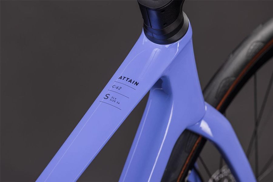 Performance oder Komfort? Das Attain C:62 kann beides. Ein Grund dafür ist die aero-optimierte Rahmenkonstruktion aus dem hochwertigen C:62® Carbon, das pfeilschnell durch die Luft schneidet. Eine Kombination aus X12 Steckachsen und einer ausgeklügelten Rahmenkonstruktion ermöglicht zudem exzellente Kraftübertragung. Clever: Die im Inneren verlaufende Züge spielen nicht nur der aufgeräumten Optik des Bikes in die Karten, sondern auch seiner Aerodynamik. So viel zur Performance. In Sachen Komfort wartet dieser edle Racer mit Flex-Sitzstreben und einer Vollcarbongabel auf, die Schläge und Vibrationen absorbieren, was selbst auf langen Strecken oder rauem Straßenbelag frühzeitiges Ermüden verhindert. Zugunsten von noch mehr Grip und Fahrkomfort gibt's zudem genügend Reifenfreiheit für Pneus bis 34 mm Breite.
