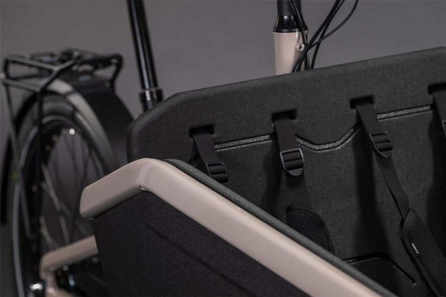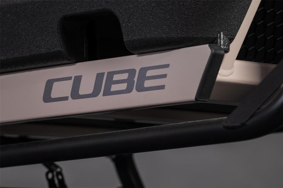 Das Cargo Hybrid Family kommt als sichere, vielseitige Familienkutsche daher, die riesig Spaß macht, egal wohin die Reise geht. Die Kindersitzbank mit inkludierten Anschnallgurten findet in der robusten Transportbox aus EPP-Schaum Platz, Regenverdeck inklusive. So haben die Eltern den Nachwuchs immer im Blick: Und der Nachwuchs? Genießt die Aussicht. Nimmt man die Kindersitze heraus, wird das Bike zum potenten Packesel für Ladung mit bis zu 200 kg Systemgewicht. Sein langlebiger Aluminiumrahmen hat einen Aufnahmepunkt für den Bosch Cargo Line Motor, der im Team mit dem 800 Wh starken Akku bis zu 100 Nm Drehmoment bereitstellt. Wer noch mehr Kapazität und Reichweite braucht, kann per PowerMore Option weitere 250 Wh nachrüsten. Dazu kommt ein kleines Staufach für persönliche Gegenstände. Clever: Per integriertem Schloss, das mit dem optionalen Kettenschloss kompatibel ist, lassen sich sowohl das Bike als auch das kleine Staufach absperren. Was noch? Der integrierte Kettenschutz hält die Kleidung sauber und per Mittelbauständer mit verlängerten Füßen wird das Bike ganz einfach abgestellt. On top hat CUBE das Steuersystem überarbeitet – so ist der Wendekreis deutlich kleiner und das Fahrverhalten spürbar einfacher und intuitiver.