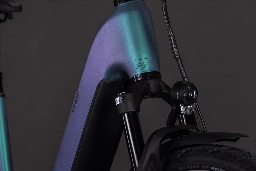 Der Tiefeinsteiger-Rahmen des CUBE Kathmandu Hybrid macht seinem Namen alle Ehre, denn das Auf- und Absteigen gehen damit supereinfach und das Abenteuer kann direkt losgehen! Doch da ist noch mehr, zum Beispiel der samt 800 Wh PowerTube Akku ästhetisch und sauber ins Design integrierte CX Motor von Bosch und die Efficient Comfort Geometry, die harmonisch mit der 100 mm Federgabel Hand in Hand arbeitet, was die Kontrolle vor allem bei schwierigen Bedingungen optimiert. Dazu die interne Zugverlegung, die den cleanen Look des Chassis unterstreicht. Was noch? Ein vielseitiges, beinahe unzerstörbares UDH für einfache Ersatzteilverfügbarkeit, ein integrierter Kettenschutz und der stabiler, robuster, überaus formschöner integrierter Gepäckträger IC 3.0, auf dem alles Platz findet, was auf Entdeckertour mit muss.