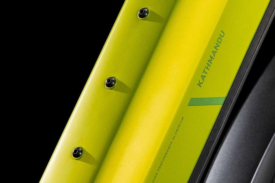 Der Rahmen des CUBE Kathmandu Hybrid sieht auf den ersten Blick vielleicht unspektakulär aus – der zweite enthüllt seine Eleganz, seine Klasse und die vielen Innovationen und cleveren Details. Der samt PowerTube Akku ästhetisch und sauber ins Design integrierte CX Motor von Bosch ist dabei nur der Anfang. Unsere Efficient Comfort Geometry arbeitet harmonisch mit der 100 mm Federgabel Hand in Hand, was die Kontrolle vor allem unter schwierigen Bedingungen optimiert. Dazu die interne Zugverlegung, die der cleanen Optik des Chassis in die Karten spielt und den Wartungsaufwand maßgeblich reduziert. Was noch? Ein vielseitiges, beinahe unzerstörbares UDH für einfache Ersatzteilverfügbarkeit, ein integrierter Kettenschutz und unser stabiler, robuster, überaus formschöner integrierter Gepräckträger IC 3.0, auf dem alles Platz findet, was auf Abenteuertour mit muss.