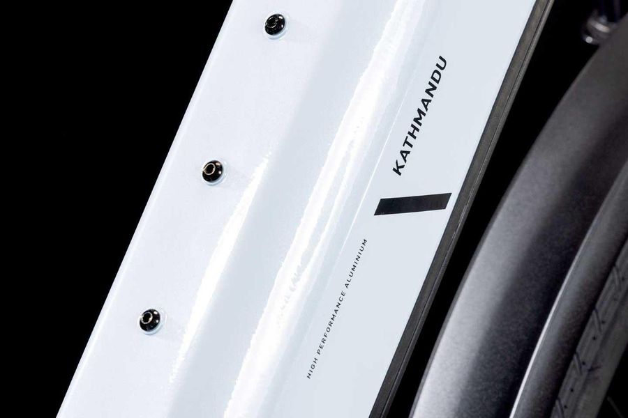 Der Rahmen des CUBE Kathmandu Hybrid sieht auf den ersten Blick vielleicht unspektakulär aus – der zweite enthüllt seine Eleganz, seine Klasse und die vielen Innovationen und cleveren Details. Der samt PowerTube Akku ästhetisch und sauber ins Design integrierte CX Motor von Bosch ist dabei nur der Anfang. Unsere Efficient Comfort Geometry arbeitet harmonisch mit der 100 mm Federgabel Hand in Hand, was die Kontrolle vor allem unter schwierigen Bedingungen optimiert. Dazu die interne Zugverlegung, die der cleanen Optik des Chassis in die Karten spielt und den Wartungsaufwand maßgeblich reduziert. Was noch? Ein vielseitiges, beinahe unzerstörbares UDH für einfache Ersatzteilverfügbarkeit, ein integrierter Kettenschutz und unser stabiler, robuster, überaus formschöner integrierter Gepräckträger IC 3.0, auf dem alles Platz findet, was auf Abenteuertour mit muss.