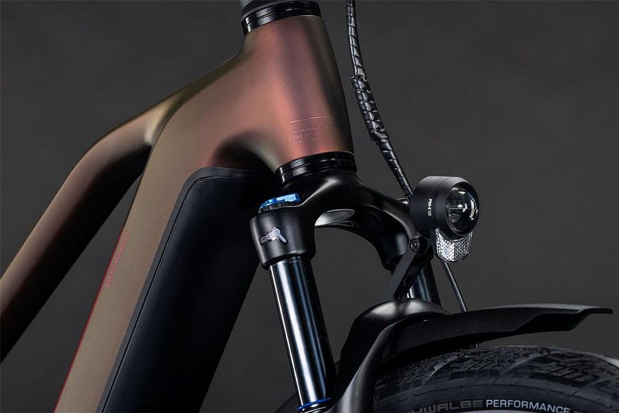 Elegantes, zeitloses Design – das ist das CUBE Kathmandu Hybrid. Auf den ersten Blick zumindest. Ein zweiter gibt den Weg frei auf jede Menge Innovationen und clevere Details. Dabei ist der samt 800 Wh PowerTube Akku ästhetisch und sauber ins Design integrierte CX Motor von Bosch nur eins der Highlights. Ein weiteres ist die Efficient Comfort Geometry, die harmonisch mit der 100 mm Federgabel Hand in Hand arbeitet, was die Kontrolle vor allem bei schwierigen Bedingungen optimiert. Dazu die interne Zugverlegung, die den cleanen Look des Chassis unterstreicht. Was noch? Ein vielseitiges, beinahe unzerstörbares UDH für einfache Ersatzteilverfügbarkeit, ein integrierter Kettenschutz und der stabiler, robuster, überaus formschöner integrierter Gepäckträger IC 3.0, auf dem alles Platz findet, was auf Abenteuertour mit muss.