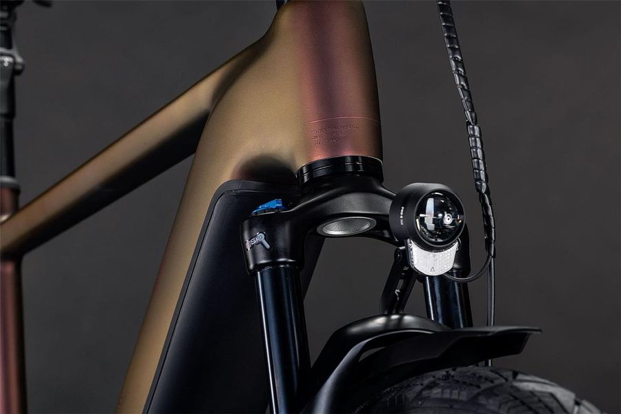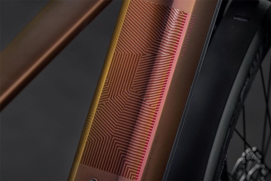 Der Rahmen des CUBE Kathmandu Hybrid sieht auf den ersten Blick vielleicht unspektakulär aus – auf den zweiten erschließen sich jedoch seine Eleganz und Klasse, außerdem die vielen Innovationen und cleveren Details. Dabei ist der samt 800 Wh PowerTube Akku ästhetisch und sauber ins Design integrierte CX Motor von Bosch nur eins der Highlights. Ein weiteres ist die Efficient Comfort Geometry, die harmonisch mit der 100 mm Federgabel Hand in Hand arbeitet, was die Kontrolle vor allem bei schwierigen Bedingungen optimiert. Dazu die interne Zugverlegung, die den cleanen Look des Chassis unterstreicht. Was noch? Ein vielseitiges, beinahe unzerstörbares UDH für einfache Ersatzteilverfügbarkeit, ein integrierter Kettenschutz und der stabiler, robuster, überaus formschöner integrierter Gepäckträger IC 3.0, auf dem alles Platz findet, was auf Abenteuertour mit muss.
