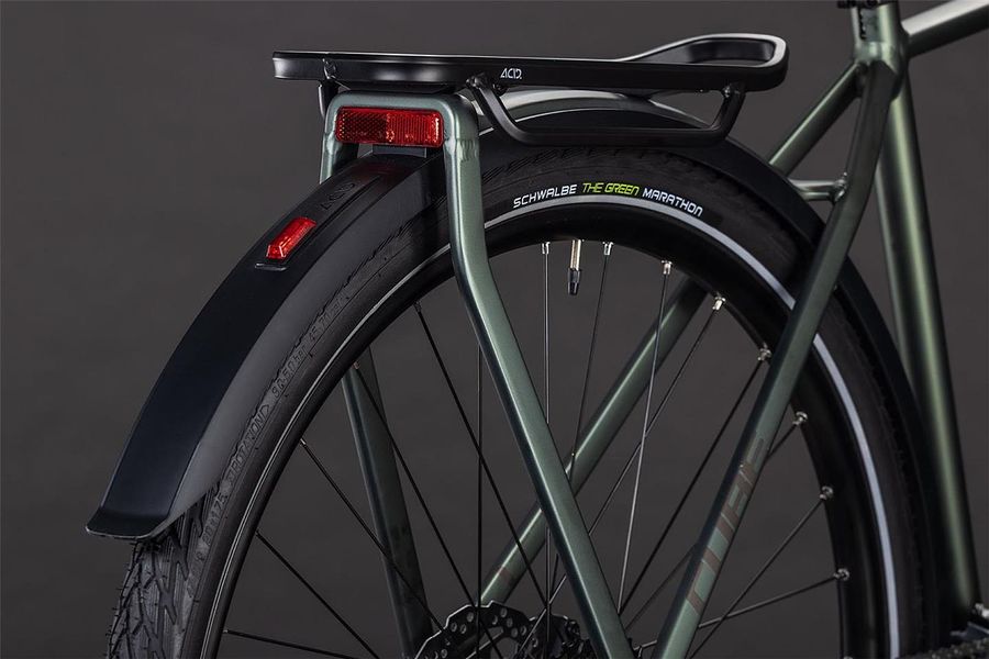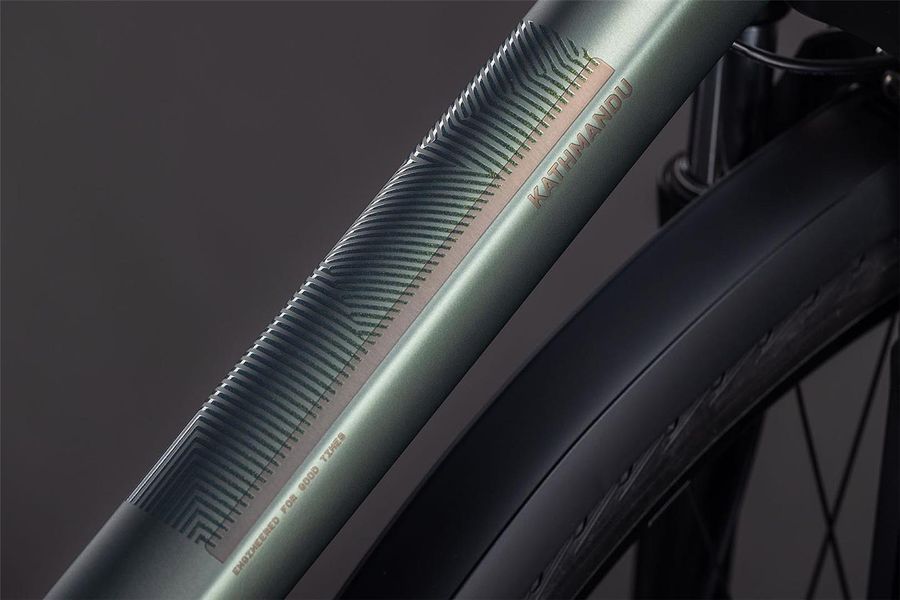 CUBE ist unter anderem für die extreme Liebe zum Detail bekannt. Deshalb hat CUBE das Kathmandu auch mit dem integrierten Gepäckträger IC 3.0 ausgestattet, der nahtlos und formschön in die ACID Schutzbleche übergeht. Dazu gibt's am Hinterrad Aufnahmen für eine Flat Mount Scheibenbremse und einen Seitenständer. Seine cleane, aufgeräumte Optik verdankt das Chassis den im Smooth Welding Verfahren gestalteten Rohrverbindungen und im Inneren verlaufenden Zügen. So viel zum Aussehen. In Sachen Funktion hat CUBE den Hinterbau mit einer Steckachse versehen und ein konisches Steuerrohr für optimierte Stabilität und Lenkpräzision (selbst bei voller Beladung) verbaut. Also alles da, was es auf Tour braucht – den Rest machst du!