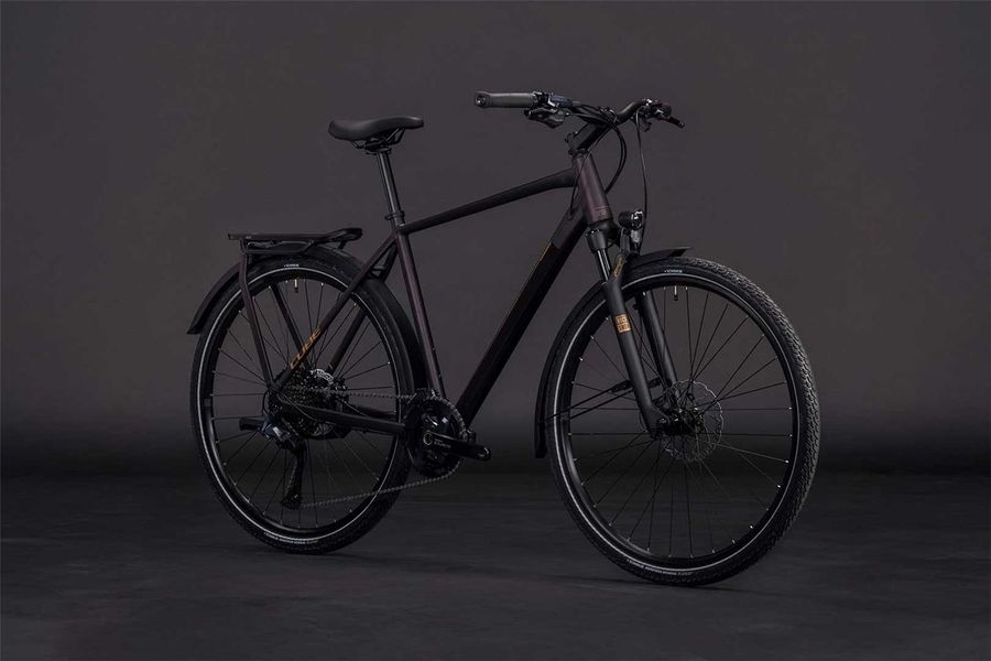 Wie geht's wohl mit am effizientesten von A nach B? Richtig, mit dem Fahrrad, vor allem, wenn es das Kathmandu SLX von CUBE ist. CUBE hat diesem kraftvollen Tourer pfeilschnell dahinrollende Marathon Mondial Reifen von Schwalbe und eine leichtgängige, zuverlässige Shimano Cues 2x11-Gang Schaltung spendiert. Kontrollierte und damit sichere Bremsmanöver gehen auf das Konto der leistungsstarken hydraulischen Cues Scheibenbremsen, ebenso von Shimano. On top gibt's eine einfach einstellbare RockShox Paragon Gold Luftfedergabel – so wird jede noch so lange Tour zum komfortablen Hochgenuss. Für den letzten Schliff sorgen der integrierte Gepäckträger IC 3.0, Schutzbleche aus recyceltem PET, Lichter (das Vorderlicht besteht aus nachhaltigen Materialien) und ein Seitenständer. So geht umweltbewusste Mobilität heute!