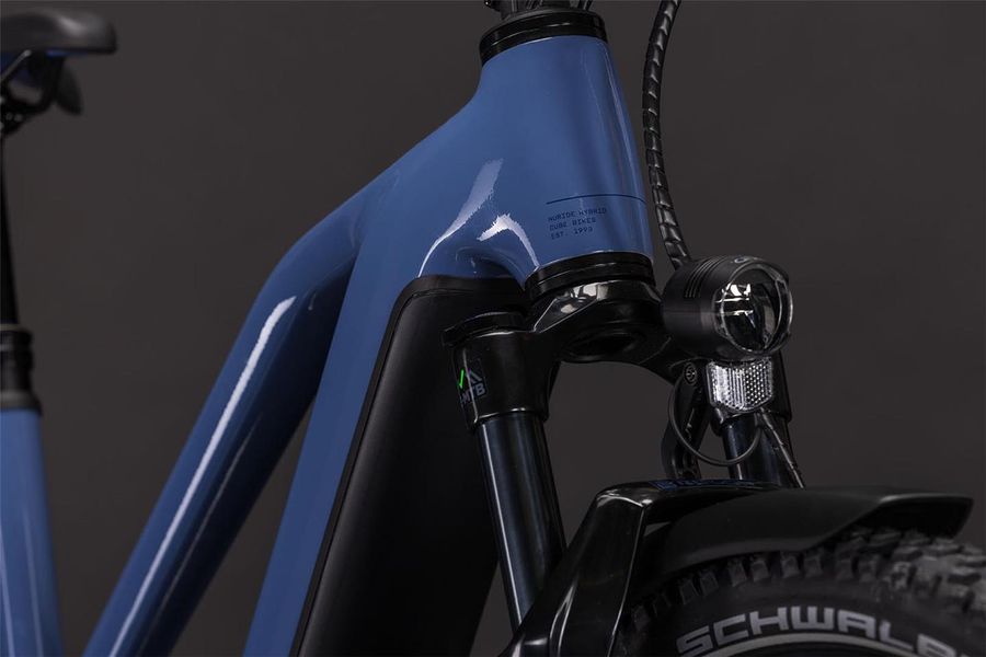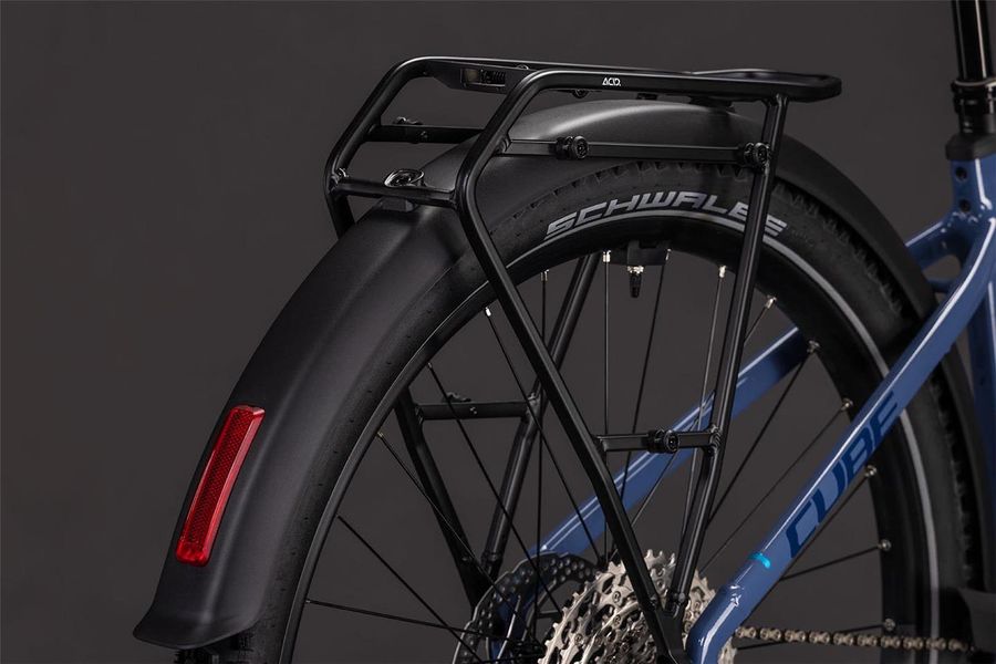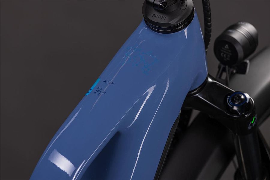 Auf den ersten Blick sieht der Nuride Hybrid Trapezrahmen vielleicht unspektakulär aus, doch wer genau schaut, wird von seiner subtilen Eleganz und den innovativen Details begeistert sein. Neben einer Federgabel mit 100 mm Federweg für ein Plus an Fahrkomfort und Kontrolle hat CUBE das Chassis mit großzügiger Reifenfreiheit (sogar inklusive der mitgelieferten Schutzbleche) ausgestattet. Im Inneren verlaufende Züge unterstreichen die cleane Optik. Ebenso harmonisch ins Rahmendesign integriert sind der Bosch CX Antrieb und der 800 Wh PowerTube Akku. On top gibt's einen integrierten Kettenschutz, serienmäßig verbaute Schutzbleche, Lichter, einen Seitenständer und den stabilen semi-integrierten Gepäckträger 2.0. Da kann das nächste Zweiradabenteuer direkt starten, oder?