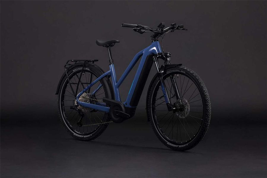 CUBE hat das Nuride Hybrid EXC 800 mit der superzuverlässigen 12-fach Shimano XT Schaltung sowie einem Bosch CX Antrieb mit 800 Wh Akku und Kiox 300 Display bestückt. Außerdem mit griffigen 57 mm Pneus von Schwalbe und einer RockShox Recon Silver Luftfedergabel mit 100 mm Federweg, die vor allem auf holprigen Wegen jede Menge Fahrkomfort ins Spiel bringen. Sicheres Verzögern und Anhalten selbst bei Nässe sind das Spezialgebiet der leistungsstarken hydraulischen 4-Kolben-Scheibenbremsen von Shimano. Last, but not least das Sahnehäubchen: die Zubehörausstattung, bestehend aus Schutzblechen, Lichtern, dem robusten semi-integrierten Gepäckträger 2.0 und einem stabilen Seitenständer. Da kann das nächste Zweiradabenteuer direkt losgehen, oder?