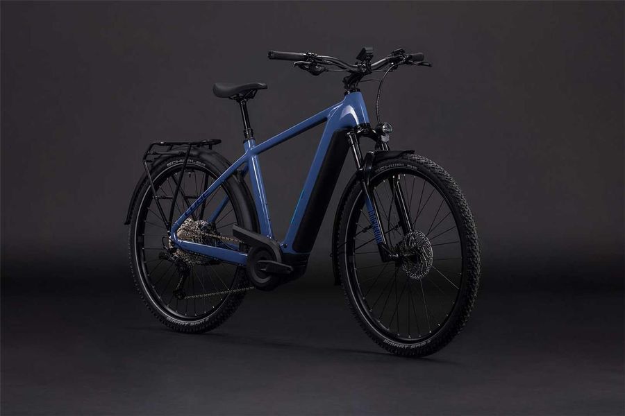 CUBE hat das Nuride Hybrid EXC 800 mit der superzuverlässigen 12-fach Shimano XT Schaltung sowie einem Bosch CX Antrieb mit 800 Wh Akku und Kiox 300 Display bestückt. Außerdem mit griffigen 57 mm Pneus von Schwalbe und einer RockShox Recon Silver Luftfedergabel mit 100 mm Federweg, die vor allem auf holprigen Wegen jede Menge Fahrkomfort ins Spiel bringen. Sicheres Verzögern und Anhalten selbst bei Nässe sind das Spezialgebiet der leistungsstarken hydraulischen 4-Kolben-Scheibenbremsen von Shimano. Last, but not least das Sahnehäubchen: die Zubehörausstattung, bestehend aus Schutzblechen, Lichtern, dem robusten semi-integrierten Gepäckträger 2.0 und einem stabilen Seitenständer. Da kann das nächste Zweiradabenteuer direkt losgehen, oder?