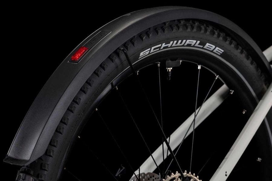 Kompromisse sind nicht so unser Ding hier bei CUBE, deshalb haben wir das Nuride Hybrid EXC Allroad auch mit der superzuverlässigen 12-fach Shimano XT Schaltung und einem mit 85Nm Drehmoment Bosch CX Antrieb samt 800Wh starken PowerTube Akku bestückt. Außerdem mit breiten, griffigen Pneus von Schwalbe und einer geschmeidig dämpfenden Suntour Luftfedergabel mit 100 mm Federweg, die vor allem auf holprigen Wegen jede Menge Fahrkomfort mitbringen. Sicheres Verzögern und Anhalten, selbst bei widrigem Wetter und Nässe, ist das Spezialgebiet der leistungsstarken hydraulischen Scheibenbremsen mit 4-Kolben-Konstruktion von Shimano. Last, but not least das Sahnehäubchen: die Allroad Zubehörausstattung, bestehend aus Schutzblechen, Lichtern und einem stabilen Seitenständer. Da kann das nächste Touren-Abenteuer kommen!