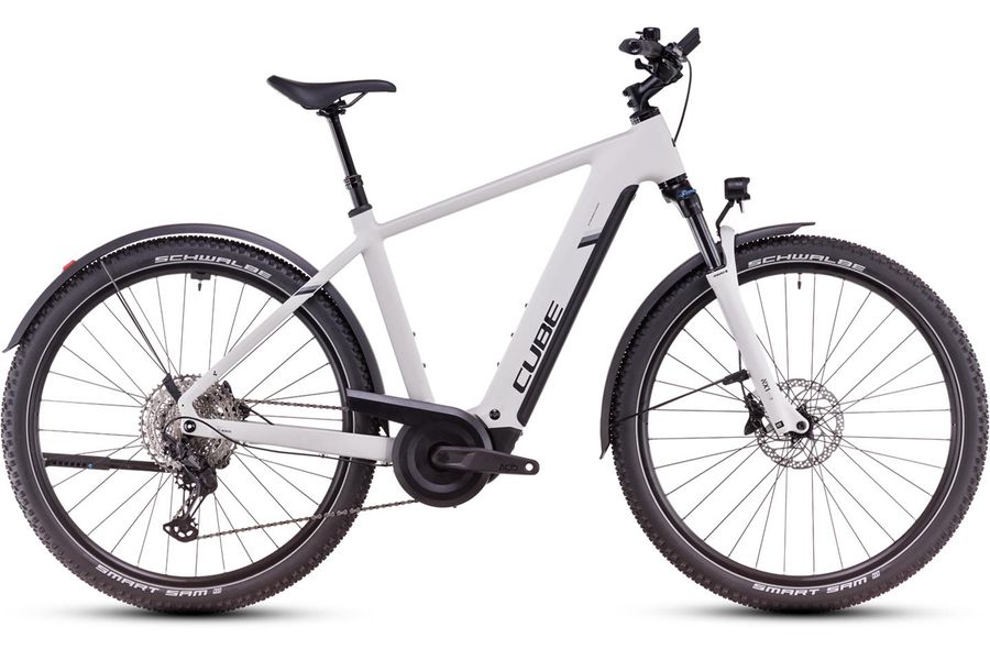 Kompromisse sind nicht so unser Ding hier bei CUBE, deshalb haben wir das Nuride Hybrid EXC Allroad auch mit der superzuverlässigen 12-fach Shimano XT Schaltung und einem mit 85Nm Drehmoment Bosch CX Antrieb samt 800Wh starken PowerTube Akku bestückt. Außerdem mit breiten, griffigen Pneus von Schwalbe und einer geschmeidig dämpfenden Suntour Luftfedergabel mit 100 mm Federweg, die vor allem auf holprigen Wegen jede Menge Fahrkomfort mitbringen. Sicheres Verzögern und Anhalten, selbst bei widrigem Wetter und Nässe, ist das Spezialgebiet der leistungsstarken hydraulischen Scheibenbremsen mit 4-Kolben-Konstruktion von Shimano. Last, but not least das Sahnehäubchen: die Allroad Zubehörausstattung, bestehend aus Schutzblechen, Lichtern und einem stabilen Seitenständer. Da kann das nächste Touren-Abenteuer kommen!