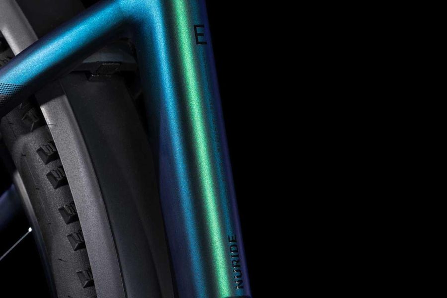 Wenn wir etwas können, dann elegante Rahmen mit 1a-Handling bauen – doch bei der Entwicklung des Nuride Hybrid haben wir uns in Sachen funktioneller Ästhetik selbst übertroffen. Neben einer Federgabel mit 100 mm Federweg für ein Plus an Fahrkomfort und Kontrolle haben wir das Chassis mit großzügiger Reifenfreiheit (sogar inklusive der mitgelieferten Schutzbleche) ausgestattet. Im Inneren verlaufende Züge unterstreichen die cleane Optik des Rahmens und verursachen kaum Wartungsaufwand. Ebenso harmonisch ins Design integriert sind der Bosch CX Antrieb und der starke PowerTube Akku. Außerdem gibt's einen Kettenschutz sowie ein UDH für einfachere Ersatzteilverfügbarkeit. Was noch? Serienmäßig verbaute Schutzbleche, Lichter und ein Seitenständer. Da kann das nächste Touren-Abenteuer kommen!