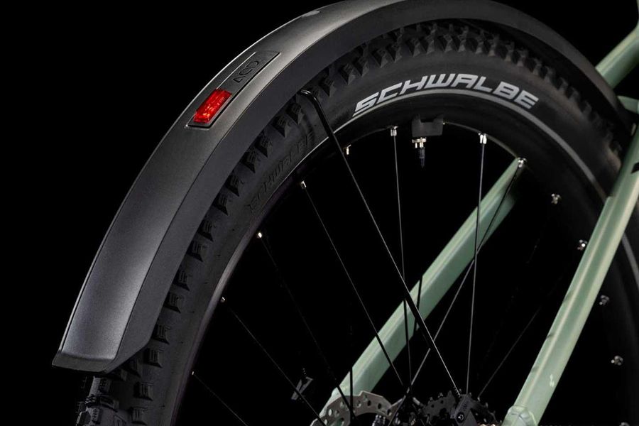 Wenn wir etwas können, dann elegante Rahmen mit 1a-Handling bauen – doch bei der Entwicklung des Nuride Hybrid haben wir uns in Sachen funktioneller Ästhetik selbst übertroffen. Neben einer Federgabel mit 100 mm Federweg für ein Plus an Fahrkomfort und Kontrolle haben wir das Chassis mit großzügiger Reifenfreiheit (sogar inklusive der mitgelieferten Schutzbleche) ausgestattet. Im Inneren verlaufende Züge unterstreichen die cleane Optik des Rahmens und verursachen kaum Wartungsaufwand. Ebenso harmonisch ins Design integriert sind der Bosch CX Antrieb und der starke PowerTube Akku. Außerdem gibt's einen Kettenschutz sowie ein UDH für einfachere Ersatzteilverfügbarkeit. Was noch? Serienmäßig verbaute Schutzbleche, Lichter und ein Seitenständer. Da kann das nächste Touren-Abenteuer kommen!