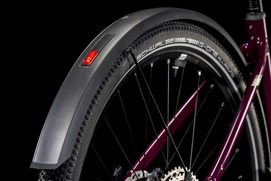 Wenn wir etwas können, dann elegante Rahmen mit 1a-Handling bauen – doch bei der Entwicklung des Nuride Hybrid haben wir uns in Sachen funktioneller Ästhetik selbst übertroffen. Neben einer Federgabel mit 100 mm Federweg für ein Plus an Fahrkomfort und Kontrolle haben wir das Chassis mit großzügiger Reifenfreiheit (sogar inklusive der mitgelieferten Schutzbleche) ausgestattet. Im Inneren verlaufende Züge unterstreichen die cleane Optik des Rahmens und verursachen kaum Wartungsaufwand. Ebenso harmonisch ins Design integriert sind der Bosch CX Antrieb und der starke PowerTube Akku. Außerdem gibt's einen Kettenschutz sowie ein UDH für einfachere Ersatzteilverfügbarkeit. Was noch? Serienmäßig verbaute Schutzbleche, Lichter und ein Seitenständer. Da kann das nächste Touren-Abenteuer kommen!