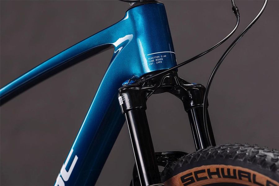 Mission Speed: Das Reaction C:62 SLX ist eine pfeilschnelle Cross-Country-Maschine, die CUBE mit den allerbesten Komponenten bestückt hat. Zum Beispiel einer Fox 32 Float Performance SC Federgabel mit Remote Lockout für unschlagbare Bodenhaftung und Spurtreue im Gelände. Oder dem GX Eagle Transmission Antrieb von Sram, der mit seinen 12 Gängen nicht nur einen weiten Übersetzungsbereich, sondern auch superexakte, schnelle Gangwechsel in petto hat. Das Spezialgebiet der Newmen Beskar 30 Laufräder mit 2.25 Zoll Racing Ray und Racing Ralph Pneus von Schwalbe: explosive Beschleunigung, gepaart mit exzellentem Grip. Kraftvoll, kontrolliert – und um einiges später – gebremst werden kann mit den hydraulischen MT8 Pro Scheibenbremsen von Magura. Racer-Herz, was willst du mehr?