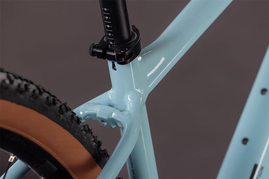 Der Reaction Rahmen besticht mit seinem supercleanen Look – verantwortlich dafür: die im Smooth Welding Verfahren gestalteten Verbindungen an Steuer- und Sattelrohr. Außerdem hat CUBE ein geschraubtes Tretlager verbaut und die Züge ins Innere verlegt. Es gibt sogar eine Aufnahme für Flat Mount Scheibenbremsen, die nahtlos in die Seitenständeraufnahme integriert ist. Montagepunkte für ACID Schutzbleche und Gepäckträger sind auch mit dabei. Seine durch und durch Trail-taugliche Geometrie mit einem niedrigeren Oberrohr und konischen Steuerrohr für superzuverlässiges Handling lässt genug Platz für breite, griffige, komfortable 2.25 Zoll Reifen. Da mit wachsendem Fahrkönnen auch die Ansprüche steigen, kann das Chassis zudem mit einer versenkbaren Sattelstütze nachgerüstet werden.