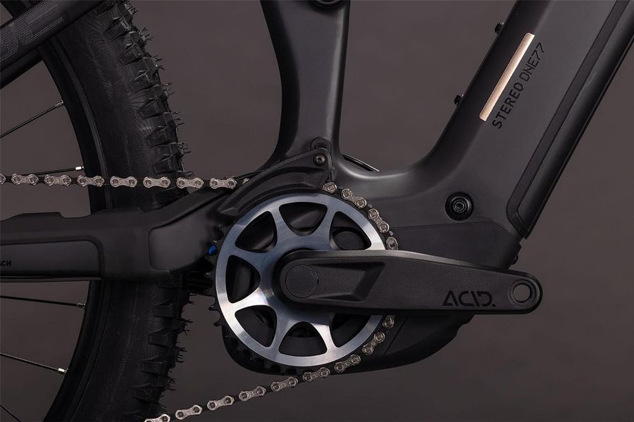 Der Rahmen des Stereo Hybrid ONE77 HPC ist wahrlich eine Klasse für sich, denn hier treffen 170 mm Federweg an der Front und am Heck auf ein Mullet-Set-up mit einem 29 Zoll Vorderrad und 27.5 Zoll Hinterrad. Damit werden Big-Mountain-Trail-Träume wahr! Wie immer bei CUBE maximal detailverliebt konstruiert auch der Rest: Integrated Cable Routing sorgt für einen supercleanen Look. Dazu kommt ein Steuersatz zur Winkelverstellung, mit dem sich das Handling an individuelle Vorlieben und Anforderungen anpassen lässt. Außerdem hat CUBE den 800 Wh starken PowerTube Akku gleich über dem Bosch CX Motor sauber und formschön ins Carbon-Unterrohr integriert. Für einfachere Ersatzteilverfügbarkeit gibt's ein UDH am Aluminium-Hinterbau – und weil CUBE auch eine Direct Mount Kettenführung verbaut hat, geht's mit diesem Fully selbst bei schwierigen Bedingungen weiter, weiter und immer weiter.