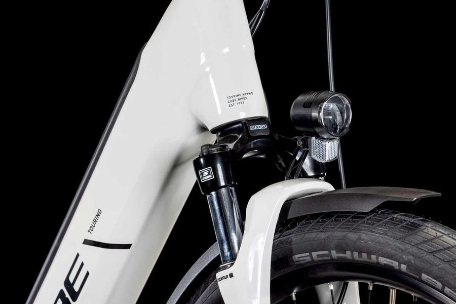 Dezenter Look, unkompliziertes Handling – der Tiefeinsteigerrahmen des Touring Hybrid ist wahrlich eine Klasse für sich, hier folgt die Form der Funktion. Im Zentrum dabei: der Bosch Performance Motor mit 625 Wh PowerTube Akku, den wir so ästhetisch ins Design integriert haben, dass er kaum auffällt. Außerdem macht unsere Efficient Comfort Geometry ihrem Namen alle Ehre und fährt sich bei sämtlichen Ausfahrten durchwegs bequem und angenehm. Noch mehr Komfort – und ein kontrolliertes Fahrgefühl auf holprigen Strecken – verspricht die Federgabel mit ihren 63 mm Federweg. Selbstverständlich haben wir auch an die so wichtigen Zubehördetails gedacht und einen semi-integrierten Gepäckträger, Schutzbleche, Lichter und einen Seitenständer montiert. Da kann das Zweiradabenteuer doch direkt losgehen, oder?