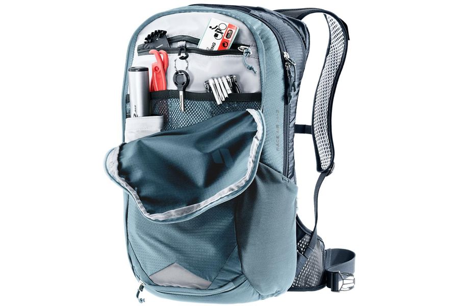 Sportlich unterwegs auf Bike-Tagestour mit federleichtem Gepäck: der Race Air 14 +3 bringt gerade einmal 940 Gramm auf die Waage. Durch die dreiseitige Belüftung und kompakten Sitz dank ergonomisch geschnittener Netz-Schulterträger und -Hüftflossen lassen sich mit dem Race Air Modellen gerne schweißtreibende Strecken fahren. Mit der Volumenerweiterung kann beim Race Air 14+3 auch mal mehr mit auf Tour.