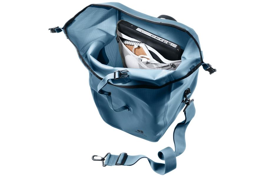 Die deuter Visby 20+5 ist eine vielseitige, wasserdichte Fahrradtasche mit 20 + 5 Litern Volumen, die sich dank Rolltop, BagFix-Halterung und Schultergurt ideal für Alltag , Bikepacking und Touren eignet.