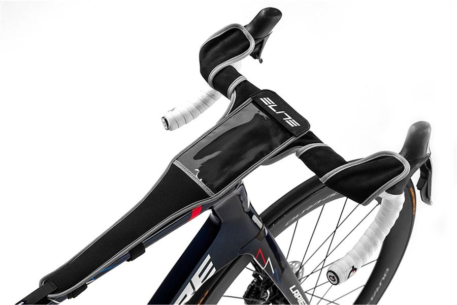 Der Rahmenschutz von Elite besteht aus einem hochabsorbierenden technischen Gewebe, das verhindert, dass Schweiß die exponierten Teile des Fahrrads erreicht, und so das Risiko von Korrosion und Verschleiß im Laufe der Zeit vermeidet. Der Lenkerbereich ist aus spezieller Mikrofaser gefertigt, die entwickelt wurde, um das Lenkerband zu schützen und Feuchtigkeitsansammlungen zu vermeiden, wodurch Haltbarkeit und Qualität auch nach intensiven Trainingseinheiten erhalten bleiben. Protec Wings besteht aus zwei verstellbaren Befestigungselementen, die sich leicht an verschiedene Rahmengrößen und Lenkerbreiten anpassen lassen, wodurch es mit den meisten auf dem Markt erhältlichen Fahrrädern kompatibel ist. Der Lenkerbereich ist mit Rennrädern kompatibel, während der Abschnitt für das Oberrohr für alle handelsüblichen Fahrräder geeignet ist. Die zwei Gummibänder an der Basis der Flügelsektion sorgen für eine einfache Befestigung, stabile Positionierung und schnelles Entfernen: Schütze dein Fahrrad und starte sofort mit dem Training.
