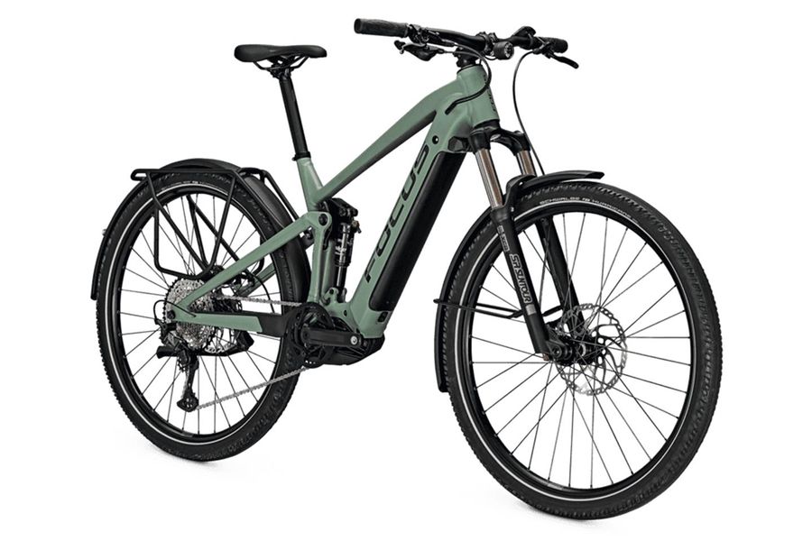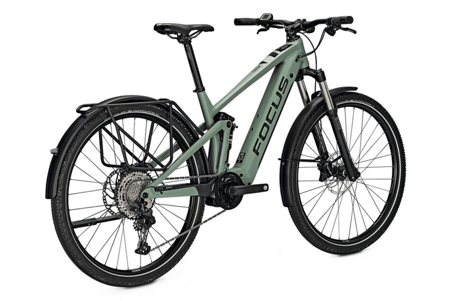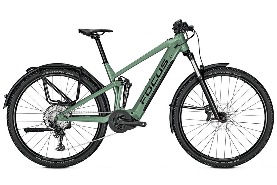 Mit dem Thron² 6.8 EQP zeigt der deutsche Hersteller Focus, dass ein E-Fully alles kann. Denn dank Vollausstattung (EQP = „equipped“) mit Gepäckträger, Lichtanlage, Seitenständer und Schutzblechen wird das Thron² zum perfekten Allrounder. Ein Stadt-, Touren- und Mountainbike in Unison. Basis ist ein sportlich-komfortabler Aluminium Rahmen mit der Focus-eigenen F.O.L.D Kinematik, die auch bei den reinen Gelände E-Fullys zum Einsatz kommt. Gegenüber des herkömmlichen Thron² 6.8 Modells wurden im Detail einige Komponenten auf den Touren-orientierten Einsatzbereich abgestimmt: Die 29-Zoll-Laufräder sind mit Schwalbe Hurrican Performance Reifen bezogen, die auch auf Asphalt leicht rollen. An der Front arbeitet eine SR Suntour XCR 34 Federgabel. Und auf eine Teleskop Sattelstütze wird zu Gunsten der hochwertigen Anbauteile verzichtet.