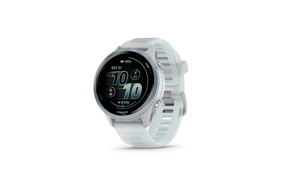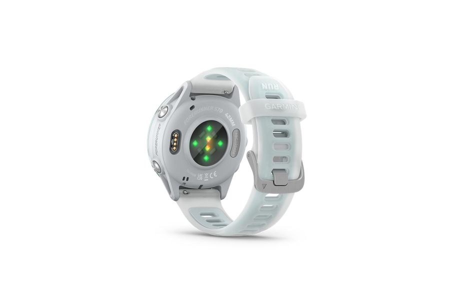 - Forerunner® 570 - 42mm Steinweiss/Cloud Blue Aluminium mit Schnellwechsel-Silikon-Armband 20 mm Transparent Steinweiss/Cloud Blue