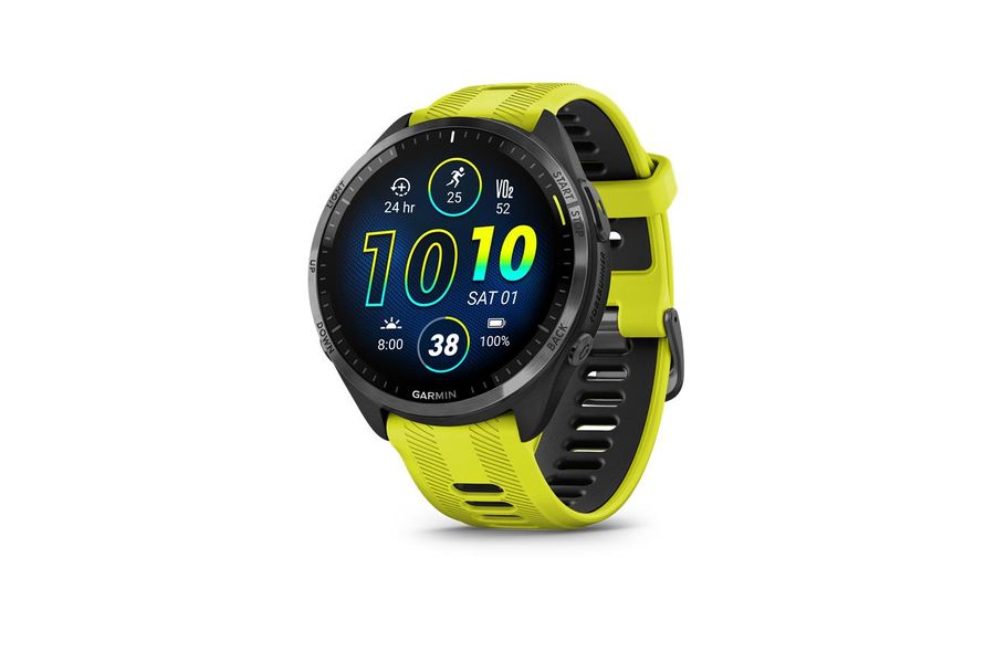 - Forerunner 965 Schwarz/Carbongrau DLC Titan mit Silikon-Wechselarmband 22 mm Zitronengelb/Schwarz