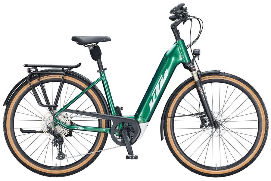 Beim Antrieb vertraut KTM auf Motoren und Akkus vom Marktführer Bosch. Man sieht dem Macina Style 620 an, wie viel Entwicklungsarbeit in die perfekte Integration gesteckt wurde. Das Ensemble aus dem kompakten Performance CX Motor und einem im Unterrohr versteckten PowerTube Akku mit 625 Wattstunden wirkt wie aus einem Guss. Je nach gewählter Unterstützung sind mit dem Macina Style Touren von weit über 100 Kilometer Distanz machbar. Über Ladestand, Reichweite und zahlreiche weitere Fahrdaten informiert ein mühelos ablesbares Bosch Intuvia Display am Lenker. Shimano Komponenten wie die bewährte Deore Schaltung und wartungsarme Scheibenbremsen sorgen für reibungslose Performance. Das Macina Style 620 führen wir in drei verschiedenen Rahmenformen: Als Herrenversion mit Diamant Rahmen, als Damenversion mit abgesenktem Oberrohr (Trapez) und als Tiefeinsteiger (US).