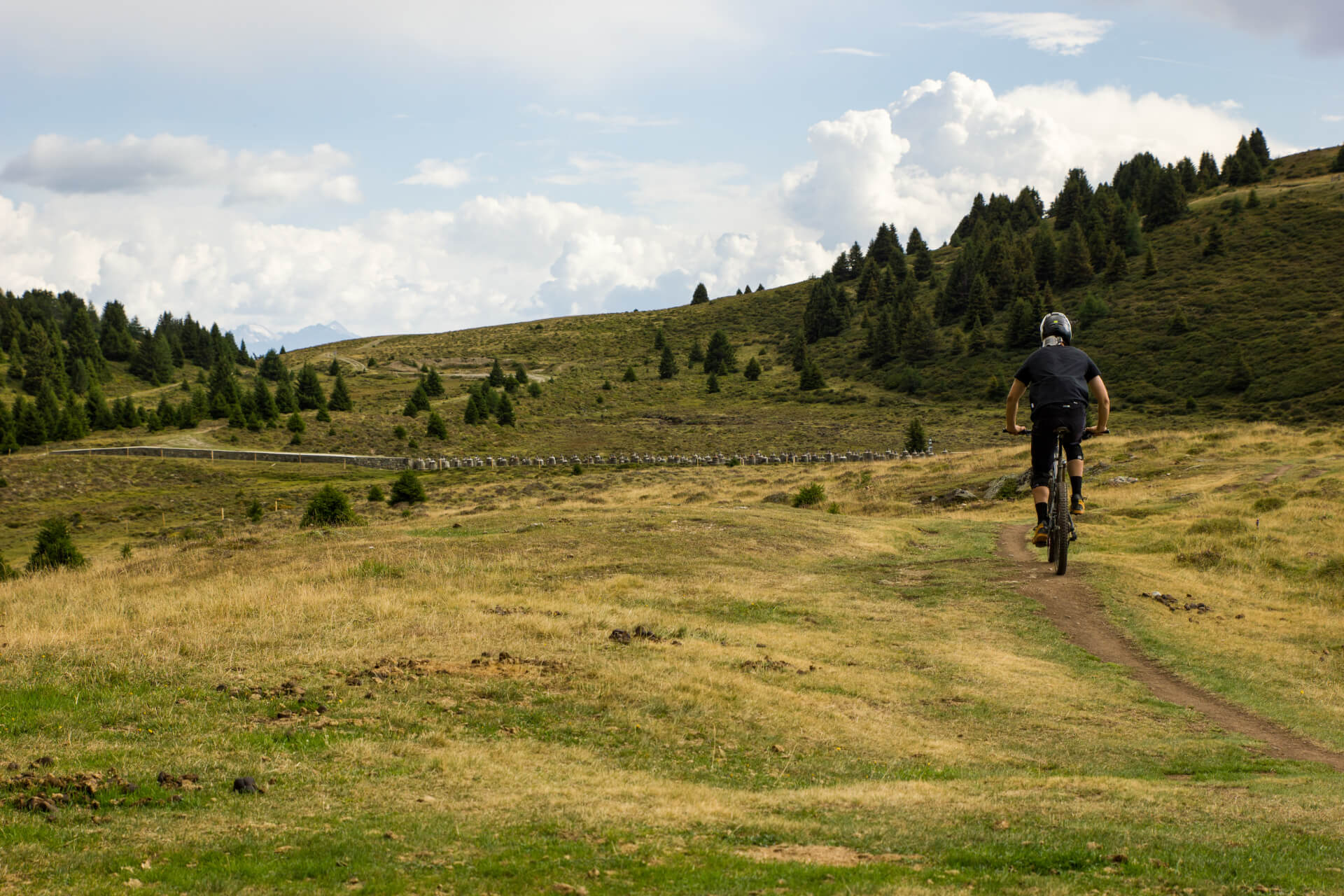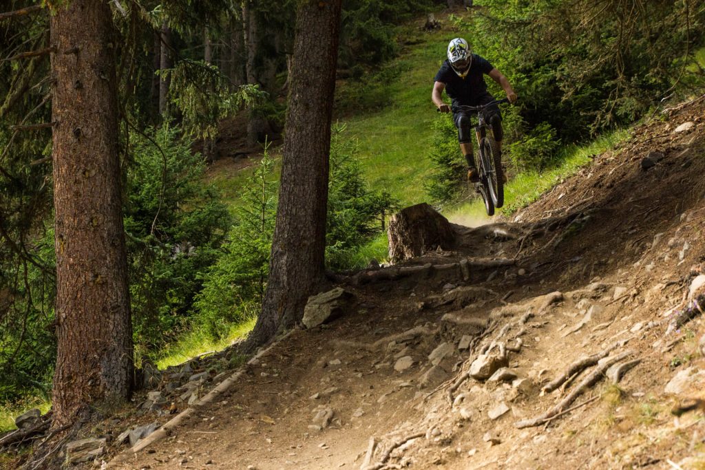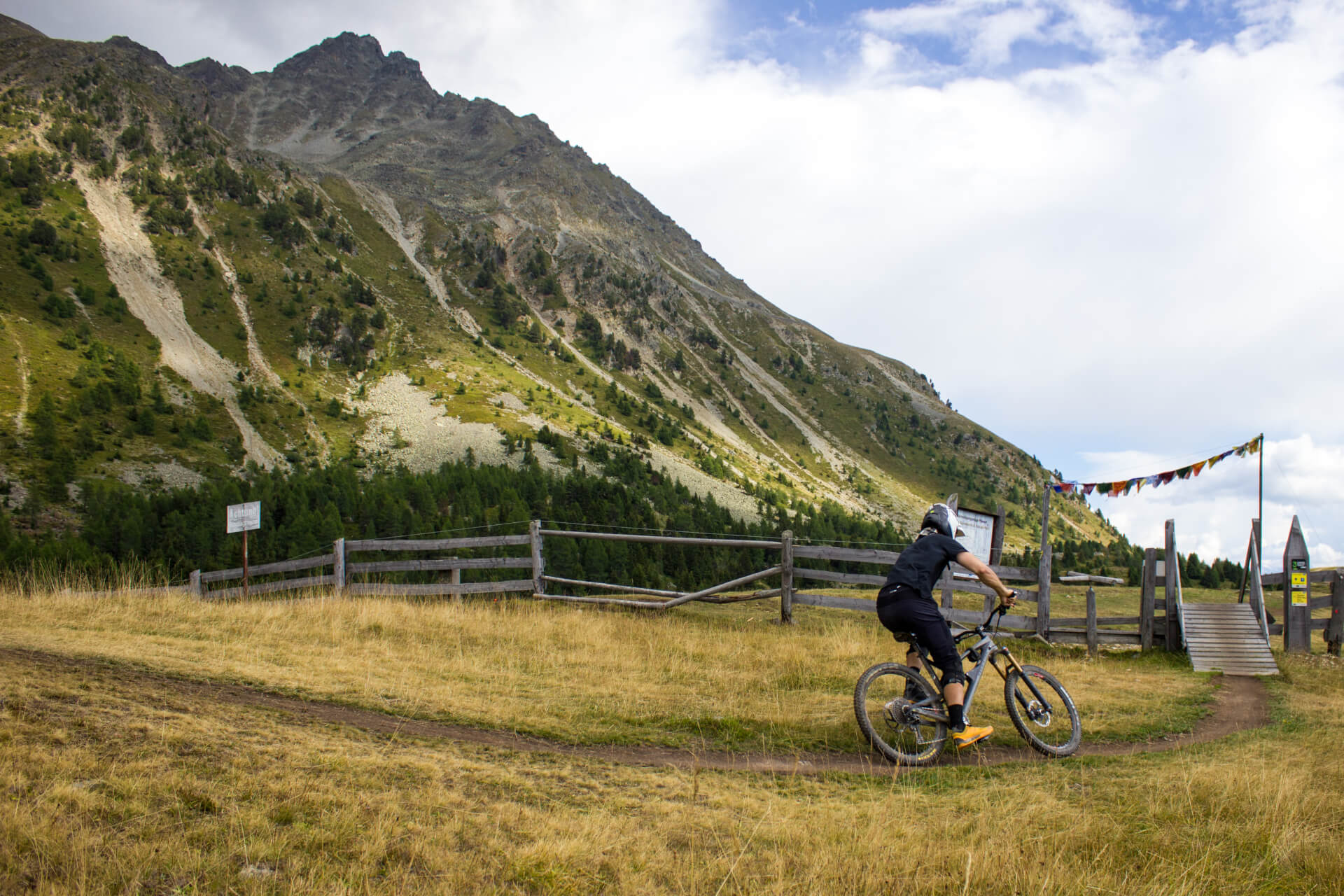 Zum Warmwerden gibt es den Garry-Trail, der sich mit wurzligen und teilweise schon anspruchsvolleren Sektionen auszeichnet, allerdings immer eine Umfahrung bietet, um anfangs nicht gleich zu überfordern. Weiter geht es auf dem Riatschwegele-Trail der ein paar Höhenmeter vor der Reschenstraße endet und die beste Verbindung zurück zur Bergkastelseilbahn bietet.