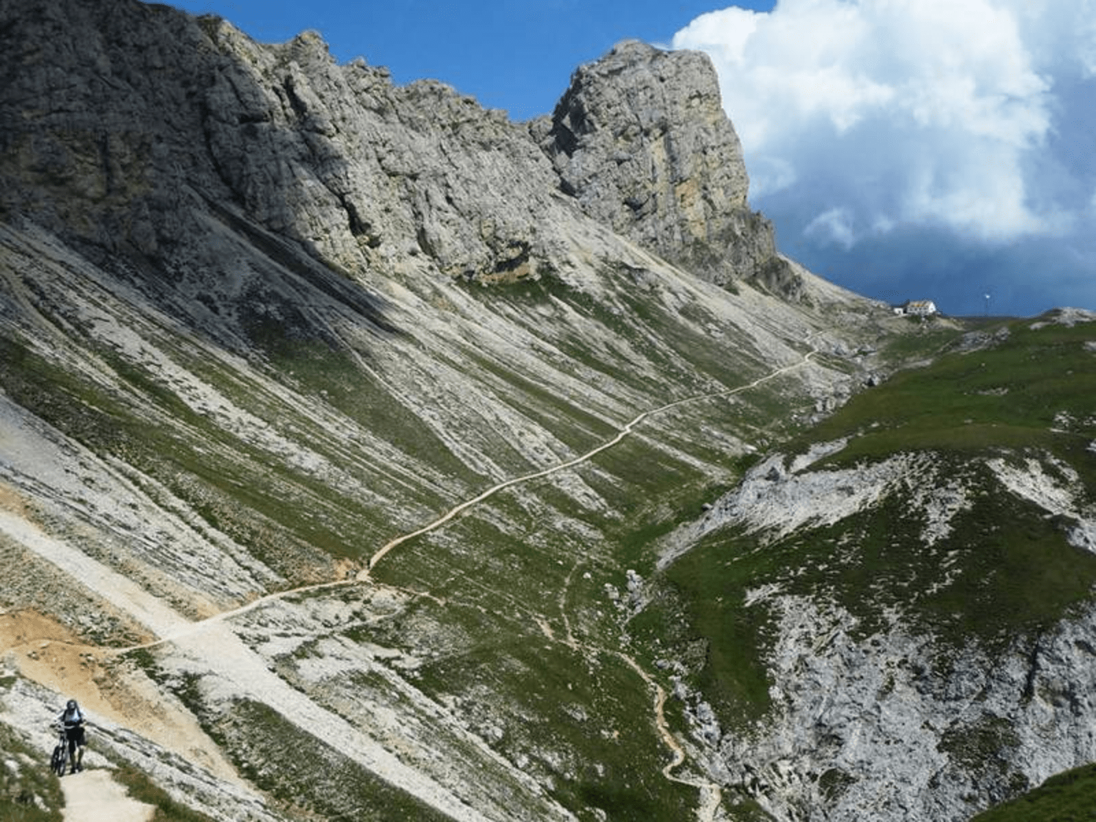 Hinunter nach Kasern wurde die üble Tragepassage saniert. Man kann den Weg jetzt fahren, allerdings trifft dies nur für gute Biker zu. Der Übergang bleibt anspruchsvoll, entschädigt aber mit toller Landschaft.