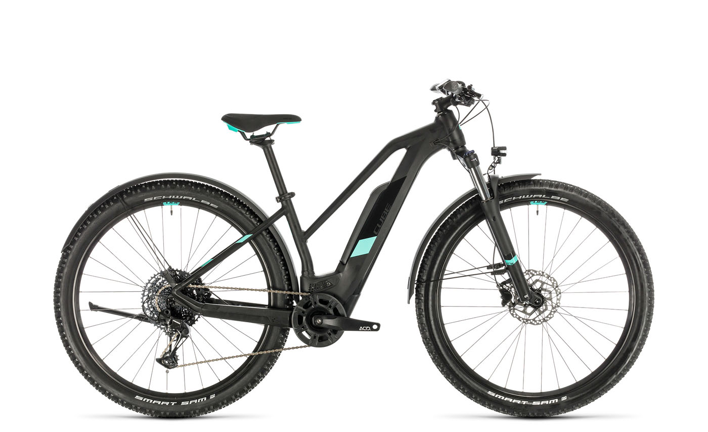 Das preiswerte CUBE Access Hybrid Pro 500 Allroad demonstriert in der Variante mit Trapez Rahmen die Vielseitigkeit der Access Hybrid E-Hardtails: heute durch die Stadt cruisen oder zur Arbeit pendeln, morgen eine launige Feierabendrunde über die Hometrails drehen. Der teilintegrierte 500-Wh-Akku befeuert den brandneuen Bosch Performance CX Motor der vierten Generation. Die weiteren Komponenten: Suntour XCM34 Federgabel (100 mm), Sram SX Eagle 12-fach Schaltung, hydraulische Shimano Scheibenbremsen und ein Natural Fit Sattel aus der CUBE WS Frauen-Kollektion. Der CUBE Size-Split bietet in puncto Rahmengrößen und Laufraddurchmesser die größtmögliche Vielfalt (siehe Einleitung). Das Access Hybrid Pro 500 Allroad wird für 2499 Euro in den RABE-Shops stehen.