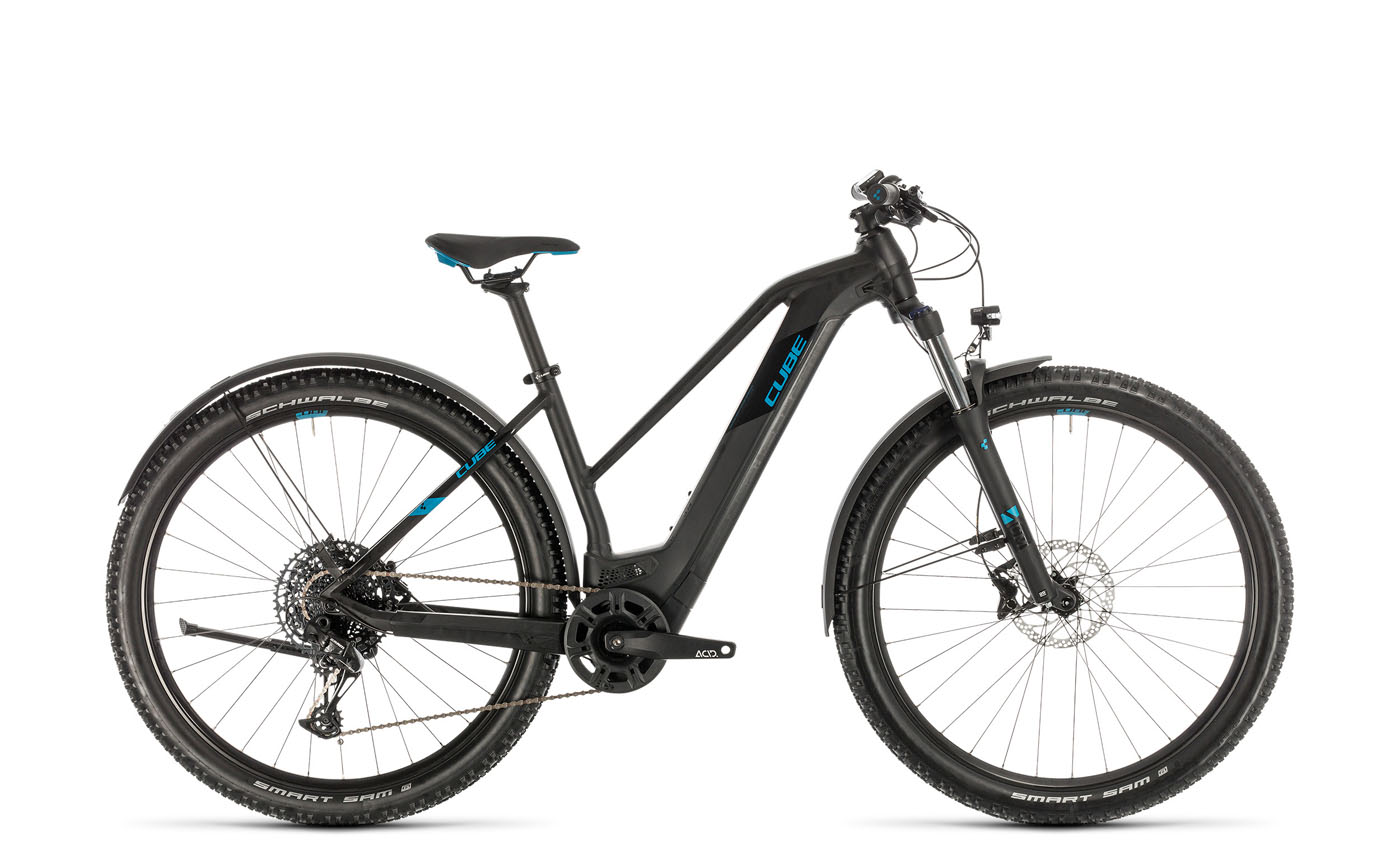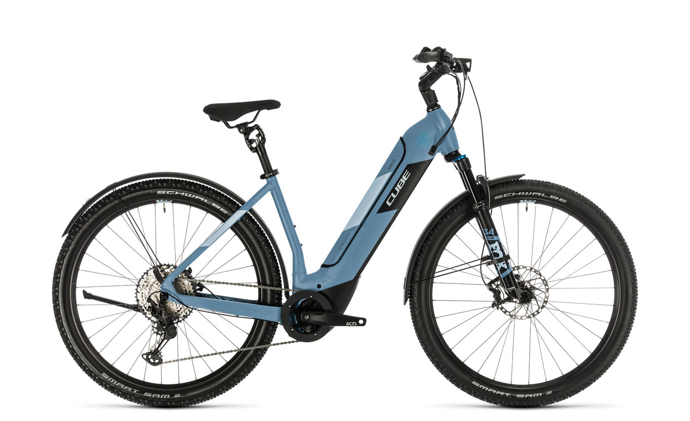 Mit der brandneuen Nuride-Serie reagiert CUBE auf die steigende Nachfrage nach komfortablen E-Mountainbikes für ältere Fahrer und Fahrerinnen. Ergebnis: Das Nuride ist ein voll geländetaugliches E-Hardtail im Gewand eines Trekkingbikes. Die Konstruktion des Rahmens stellte die CUBE-Entwickler vor echte Herausforderungen. Es galt, das Unterrohr so stabil zu konstruieren, dass es das fehlende Oberrohr ersetzen kann. Und das unter Berücksichtigung des Akkus, der schließlich kein tragendes Teil ist, aber Platz benötigt! Jetzt können sich Tourenfahrer sogar auf die Ausdauer eines 625-Wattstunden-Akkus verlassen. Highlight ist auch hier der neue Bosch Performance CX Motor, der dem Tiefeinteiger eine fantastische Performance beschert. Neben den sportiven, nackten Versionen gibt es vom Nuride auch Allroad-Varianten, bei denen die Straßenausstattung ab Werk bereits montiert ist. Inklusive einer hochwertigen Lichtanlage.