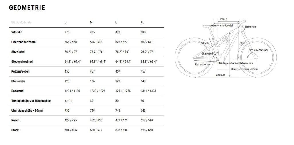 Mittlerweile bietet CUBE eine umfangreiche Größenabdeckung an. Der Reach am Stereo reicht von 425mm an Größe S bis 512mm an Größe XL. Dabei besitzt die kleinste Rahmengröße 27,5 Zoll Laufräder, damit auch kleineren Fahrern und Fahrerinnen mehr Bewegungsfreiheit geboten wird. Auch der Stack landet effektiv auf modernen, höheren Werten, denn der verbaute Acros-Steuersatz mit X-Connect Schnittstelle baut ein paar Millimeter höher auf. Der Lenkwinkel des Stereo lässt sich via Steuersatz-Schalen einstellen, fällt mit 64.8 bzw. 65.4 Grad allerdings leicht steiler aus.