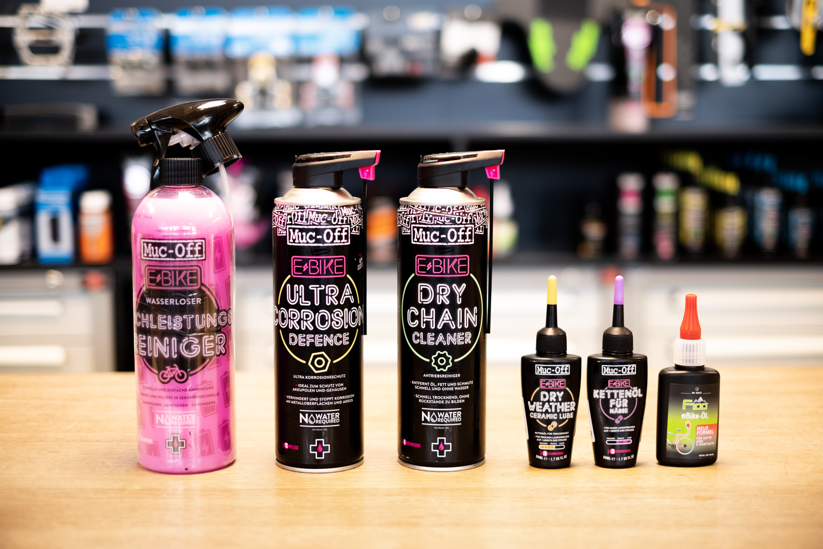 Mittlerweile bieten einige Hersteller für Pflegeprodukte spezielle Mittel für E-Bikes an. Teilweise sind diese Produkte kleine Marketing-Gags, andere Pflegeprodukte sind allerdings durchaus sinnvoll. E-Bike-Kettenöle sind zum Beispiel druckbeständiger und für die höhere Belastung des Antriebs ausgelegt und die E-Bike- Korrosionsschutzsprays sind verträglicher für die Kunststoffteile und Kontakte von E-Bikes.