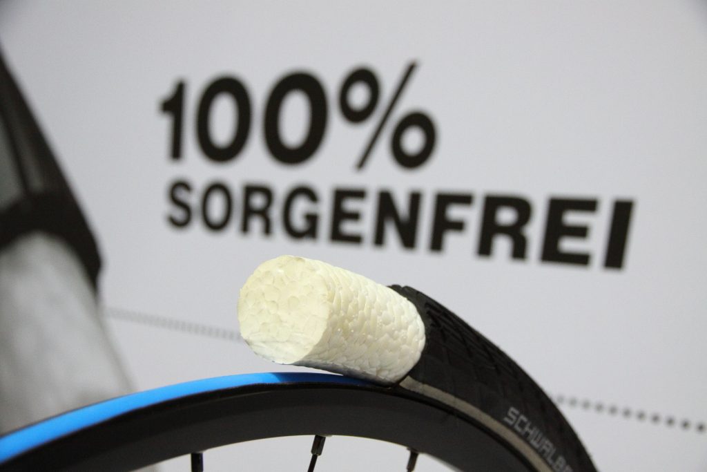 Es ist nicht der erste Versuch eines Herstellers, einen absolut pannenfreien Fahrradreifen zu entwickeln. Auf der Eurobike 2018 stellte jetzt Schwalbe sein neues Airless System vor. Statt eines Luftschlauchs liegt im Reifen der Airless Tube, bestehend aus thermoplastischem Polyurethan (E-TPU). Das gummiartige Material besitzt eine hohe Elastizität in Kombination mit einem hohen Rückstellvermögen. Selbst extreme Hitze und Kälte ändern nichts an diesen Eigenschaften. Schwalbe empfiehlt das Airless System besonders für E-Biker. Wir vermuten, weil Rollwiderstand generell mit Motor eine weniger große Rolle spielt. Leider soll es mit 40-622 nur eine Größe geben, was den Einsatzbereich einschränkt.