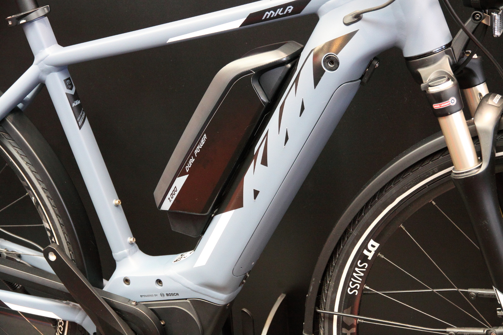 Wenns mal wieder länger dauert! Das eisblaue KTM Macina Mila E-Trekkingbike bietet mit Dual Power Leistung ohne Ende. Denn zusätzlich zum integrierten 500 Wh-Akku sitzt auf dem Unterrohr eine weitere Batterie mit 500 Wattstunden. Die Rechnung geht auf: Deine Trekking-Touren kannst du ab jetzt mit doppelter Länge planen, ohne Lade-Stopp versteht sich! Und auf den Performance CX Motor vom Marktführer Bosch kannst du dich sowieso verlassen. Die Ausstattung ist nobel: Shimano XT Schaltung und Bremsen, DT-Swiss Laufräder und B+M/KTM/SKS-Straßenausstattung. Für Fahrkomfort sorgt neben der Suntour Federgabel eine gefederte Sattelstütze. Angepeilter Preis: 4399 Euro.