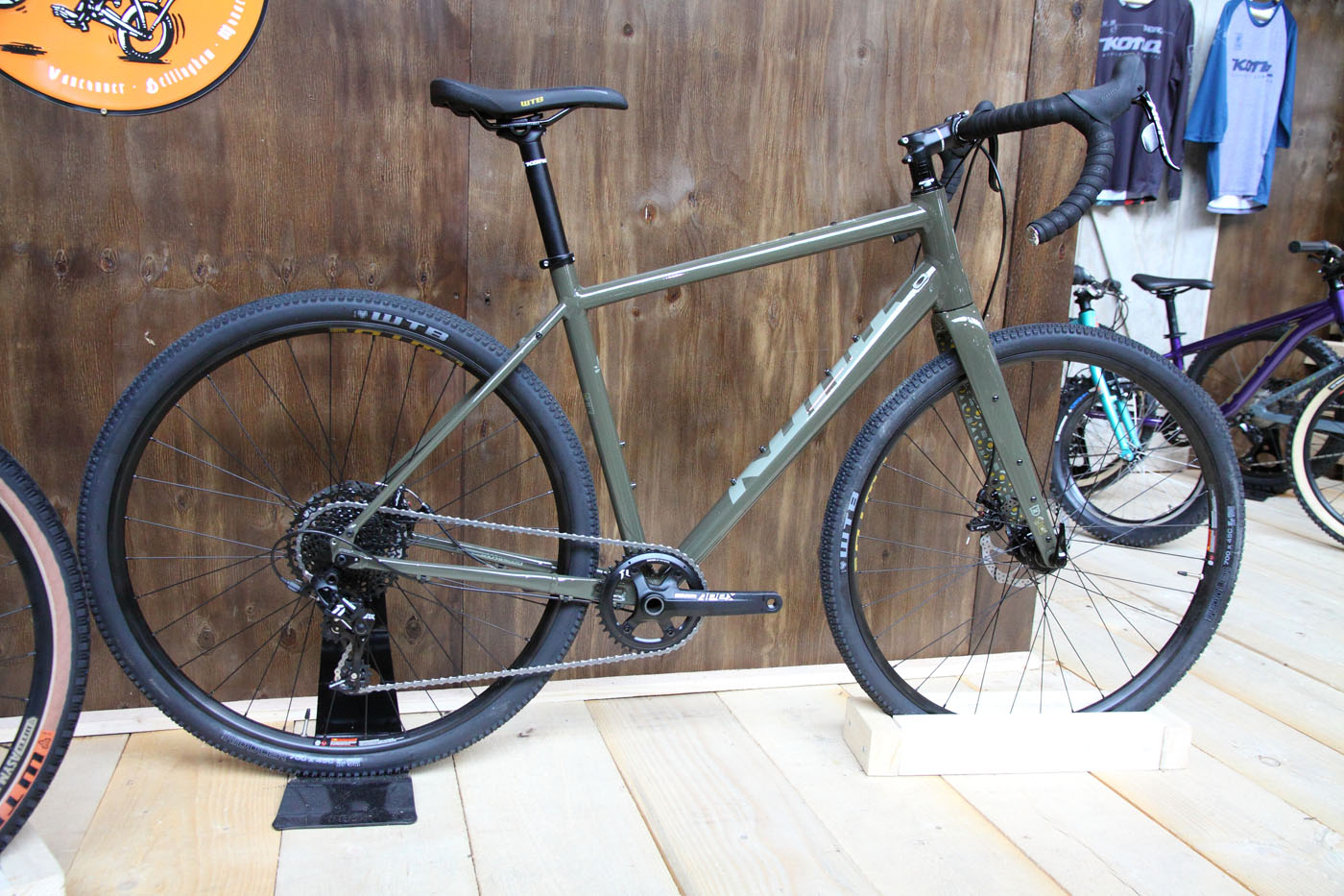 Brandneu vorgestellt wurde das Gravelbike Libre AL, die preiswerte Version des Libre (DL) mit Carbon Rahmen. Der neue Aluminium Rahmen wird durch eine Carbongabel ergänzt. Auch beim Libre AL kann man sich auf die bewährte, komfortable Geometrie der Kona Bikes verlassen. Das Gravelbike kommt mit TRP Spyre Scheibenbremsen, SRAM Apex 1×11 Antrieb und leichtgängigen Formula Naben.