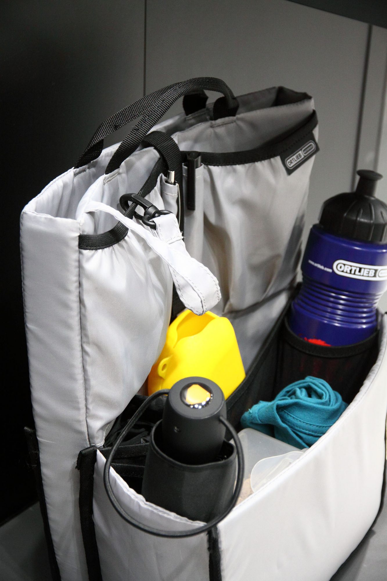 Die Back-Roller Satteltaschen links und rechts am Gepäckträger sind sicher das bekannteste und beliebteste Produkt von Ortlieb. Neue, herausnehmbare Einsätze für diese Taschen sorgen jetzt für Ordnung im Chaos. Links: Mit Hilfe der drei Packing Cubes entstehen separate Fächer, zum Beispiel für verschiedene Kleidungsstücke. Rechts: Über das Commuter Insert freuen sich Pendler, die täglich mit dem Rad ins Büro fahren. Neben mehreren Fächern für Kleinteile befindet sich hinten vertikal ein Einschub für ein Notebook.