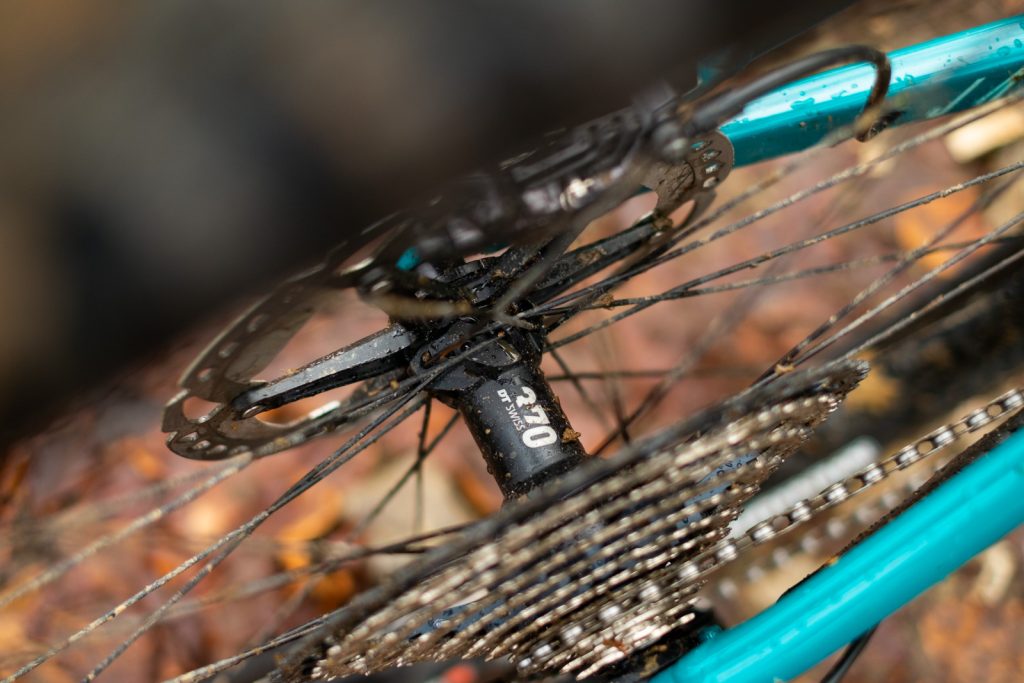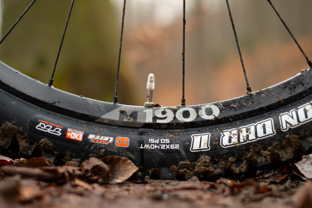 Schön anzusehen ist der DT-Swiss M1900-Laufradsatz. Breite Felgen mit 30 mm Maulweite und zuverlässigen DT-Naben mit Ratchet-(Zahnscheiben-) Freilauf sind grundsolide. Die Bereifung bildet eine klassische Kombi von Maxxis mit einem Minion DHF und DHR II in Exo- und Exo+ -Karkasse.