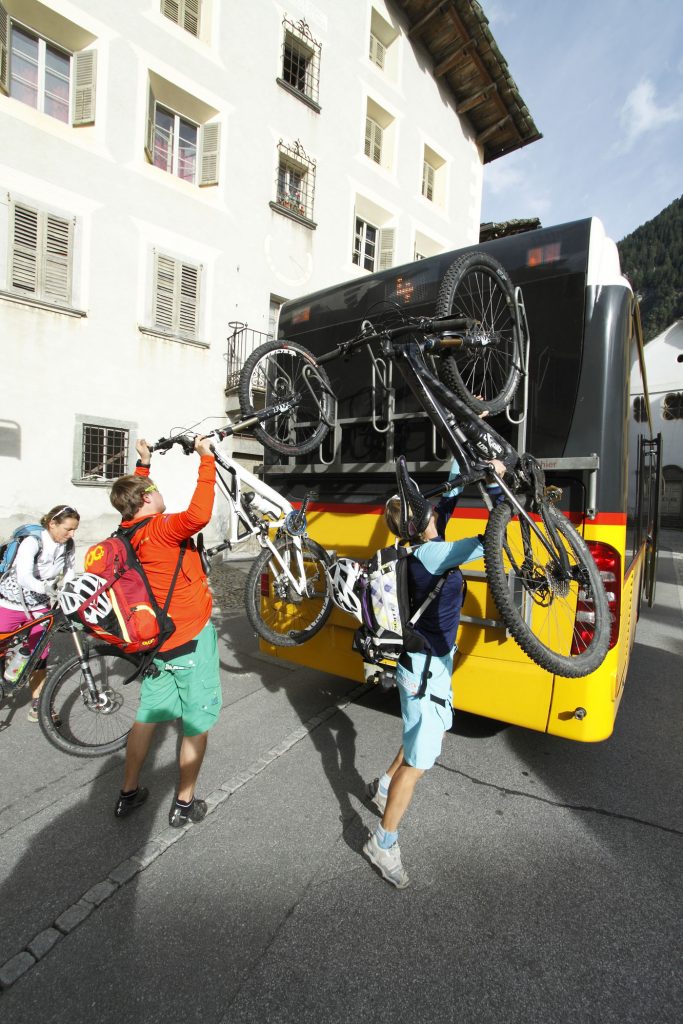 Unser schlechtes Gewissen wird mit jeder Minute und mit jedem Blick in die Ferne kleiner. Denn wir haben uns zusammen mit den Mountainbikes per Seilbahn auf den Piz Nair hieven lassen. Als Tourenfahrer eigentlich ein „No-Go“ für uns. Aber hier im Engadin rücken wir gerne von unseren Prinzipien ab. Zumindest teilweise. Denn kaum irgendwo sonst in den Alpen lassen sich Touren und Bahntransfers besser miteinander verbinden als im Oberengadin. Und mit diesen Touren sind keineswegs nur Abfahrten gemeint! Man kann selbst entscheiden, wie viele Höhenmeter man aus eigener Kraft bewältigen möchte. Die Bahn dient beispielsweise am Ende des Tages als Rücktransport zum Startort. Auf diese Weise lassen sich abwechslungsreiche Langstrecken komponieren. Denn in den Engadiner Bergen können Biker nicht nur Seilbahnen und Lifte nutzen, sondern vor allem auch Eisenbahn- und Postbuslinien.