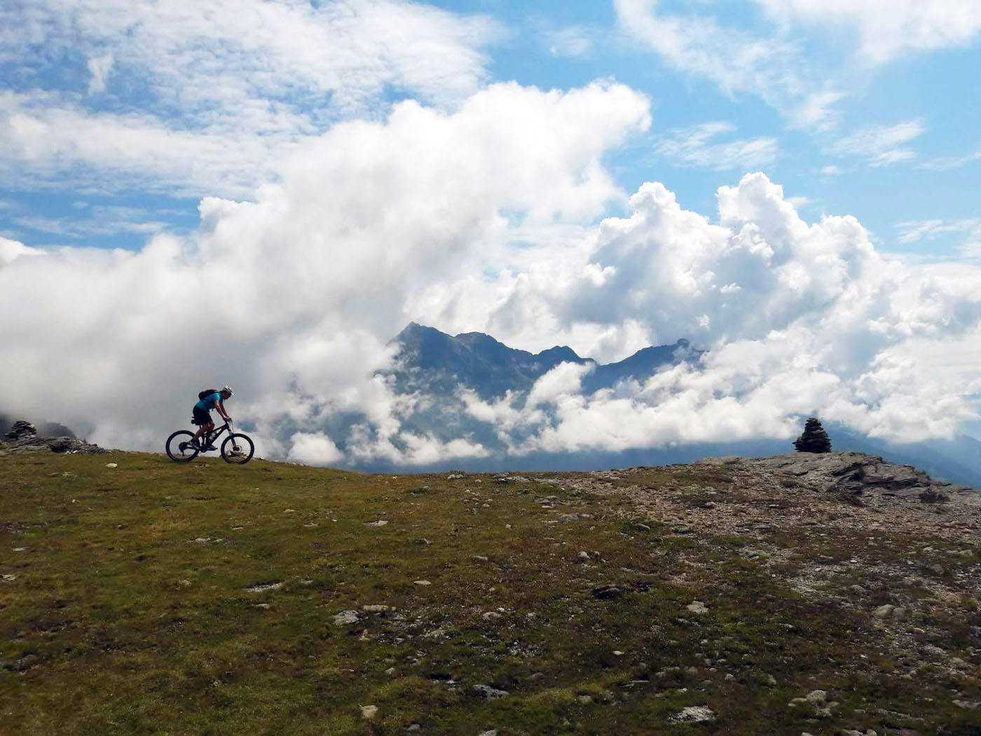 Auf Singletrails über den Berninapass